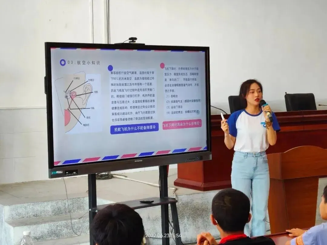 当日下午,队伍来到位于兴国县南部的思源实验学校,为120余名学生带来一堂别开生面的航空知识普及课,随后,开展有趣的折纸飞机比赛。最后,师生们为所有学生分发具有航空特色的纪念小礼品并合影留念。习近平总书记强调,历史是最好的教科书。革命先烈们为中华民族不屈不饶、英勇奋战的革命精神,久久激荡在所有人心间不能忘怀,正因有他们的负重前行才有我们今日安居乐业的美好生活。万里长征路,里里兴国魂。时代各有不同,青春一脉相承,一代人有一代人的长征,一代人有一代人的使命,时代的接力棒已经传到我们手里。青年学子们定当从革命老区汲取奋进力量,用青春践行责任担当,用奋斗回答初心使命,认真学习航空知识,弘扬爱国主义精神,深入学习宣传党的历史,用青春的语言讲好党的光辉故事,传承红色精神,助力乡村振兴!
