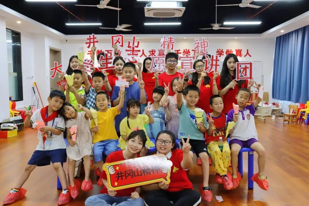 “从小爱吃的泡椒凤爪竟然暗藏‘核秘密’?为什么袋装凤爪能放这么久而不变质?……”在南昌市龙兴街道璜源社区的宣讲现场,团队成员带领社区干部群众从“味觉”上走进核文化,将“大道理”转化为“小故事”,为“两弹一星”精神增添了家常味。“山路弯弯,扁担弯弯……”一首“挑粮歌”《朱德的扁担》拉开了“红烛”课堂的帷幕。团队成员发挥教育类专业优势,玩转创意,为不同年龄段的少年儿童打造了专属的趣味课堂,颂诗词、挥笔墨、唱红歌、捏泥塑、画图画、做游戏……党的种子在少年儿童心中萌芽,小朋友们在有趣有味的语言与动手操作中既感悟红色文化,又提升实践能力,理论宣讲上接“天线”,下接“地气”。