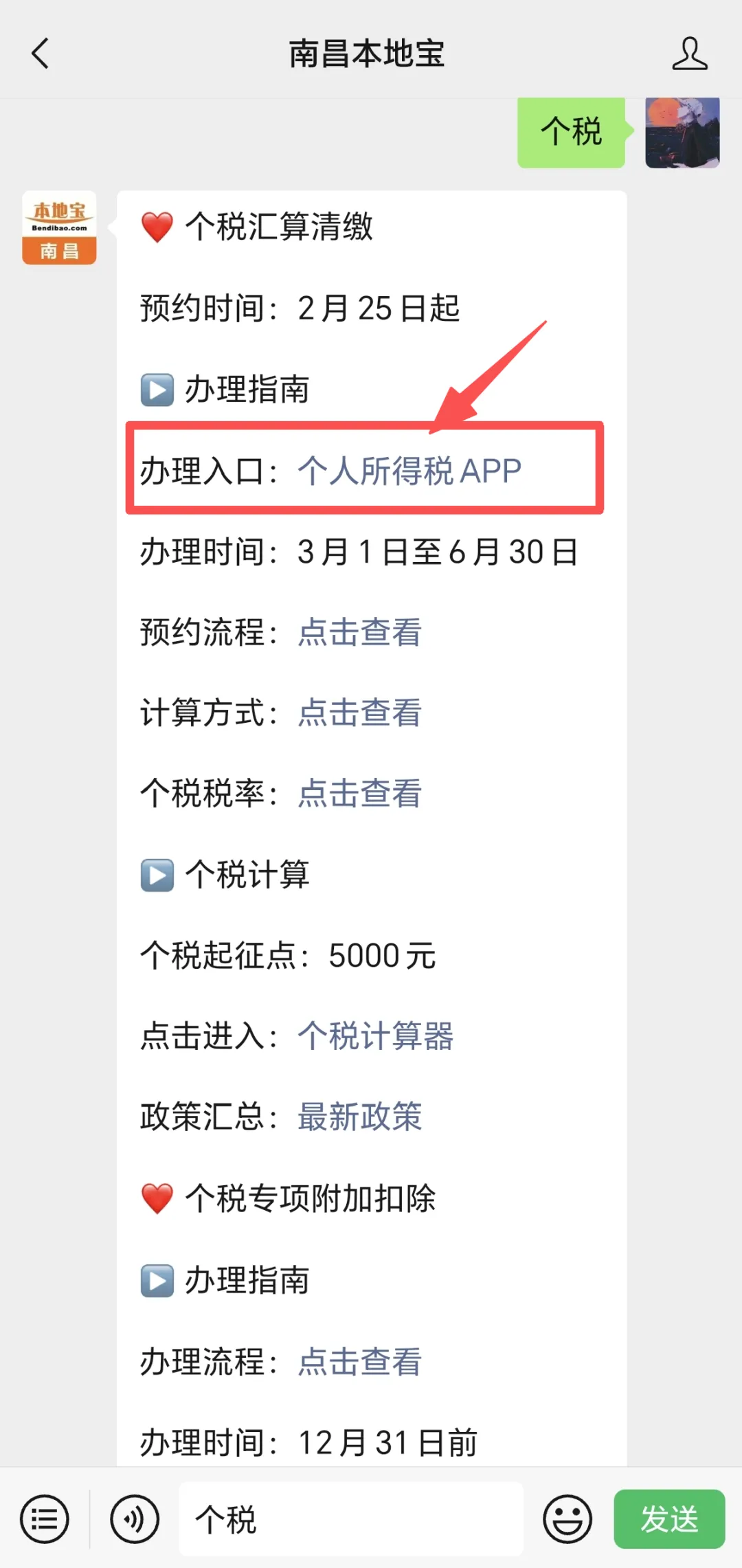 小编提醒:大家也可以长按识别下方二维码,关注【南昌本地宝】微信公众号,在微信对话框回复【个税】即可直达2025年度个税汇算预约入口、流程、个税扣除标准、税率计算公式、税率表。