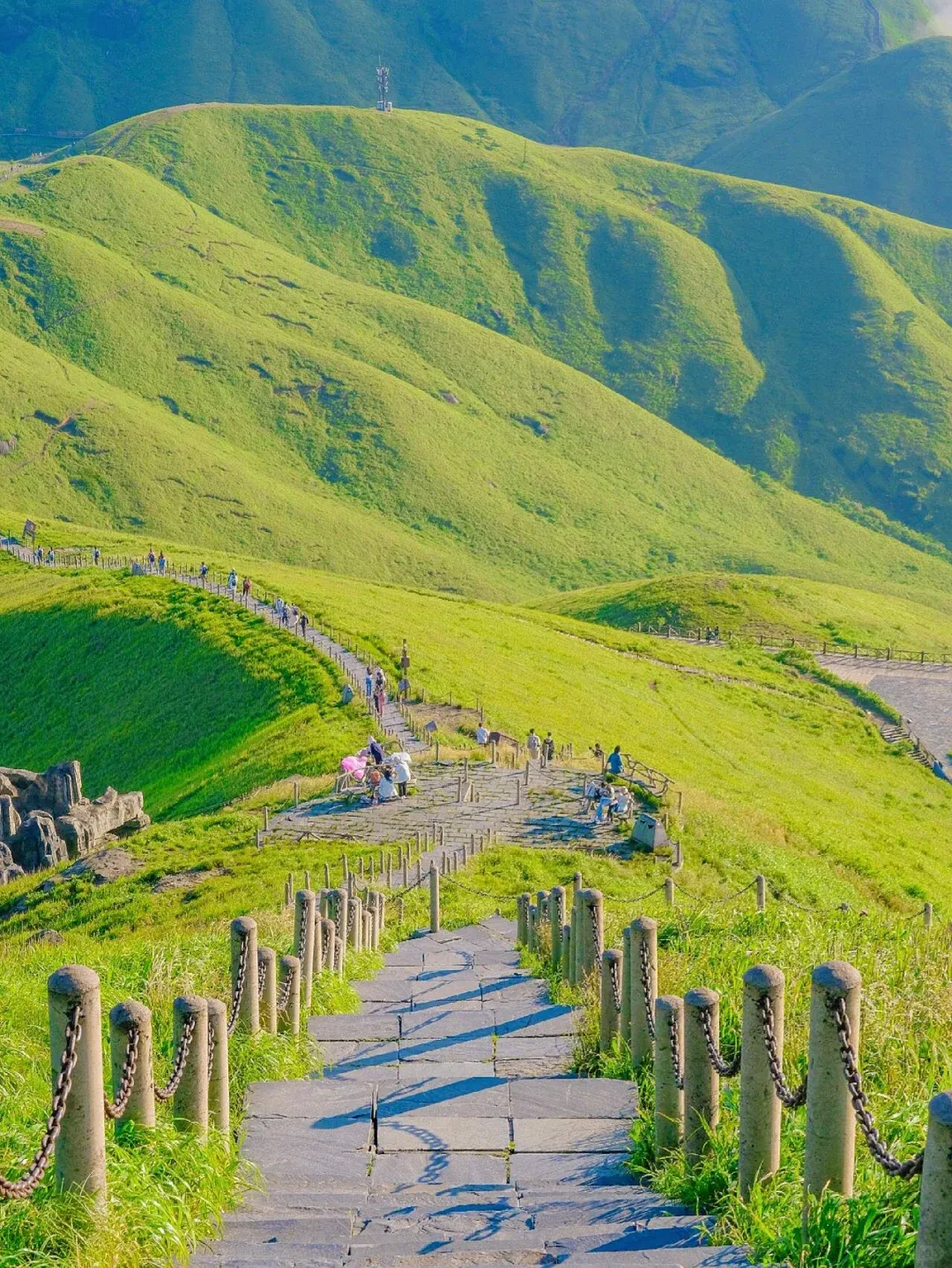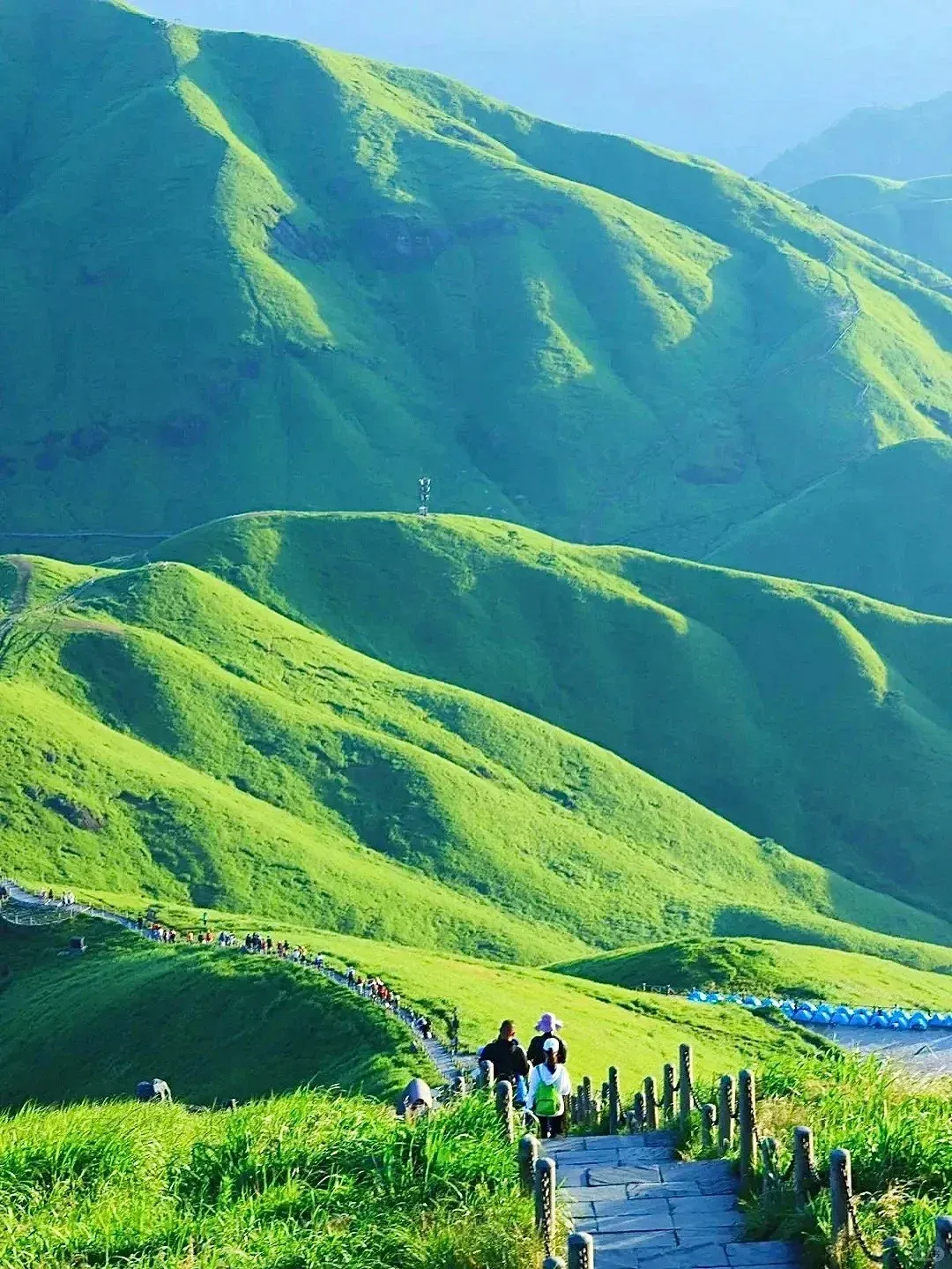 只有用脚步丈量过武功山,你才明白何为徐霞客眼中“履步彩云间”的意境。武功山囊括了全世界同一纬度上绝无仅有的高山草原风光,风吹草低,碧波荡漾,起起伏伏,满眼皆绿,不愧是华东最美高山草原。