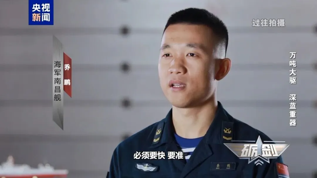海军南昌舰 乔鹏:任务难度,相当于是当时世界级的对空防御的难题,因为我们没有经历过实弹射击,整个班、整条舰的压力都是特别大的。