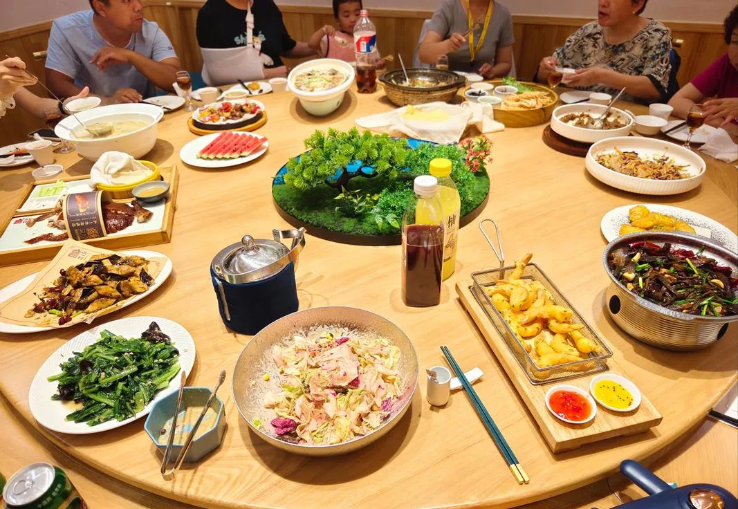 评论区里很多人说羡慕,但羡慕的点其实不是吃得好,而是这家人的状态,他们能把一顿普通的晚饭过成节日,这种能力现在越来越少见了。你去看现在大部分家庭的晚餐,要么是各吃各的,爸妈在厨房忙活,孩子抱着手机点外卖,要么是勉强坐在一起,吃饭的时候也是低头刷手机,气氛冷冷清清,不是感情不好,是大家都觉得"吃饭就是吃饭",没必要搞那么隆重。