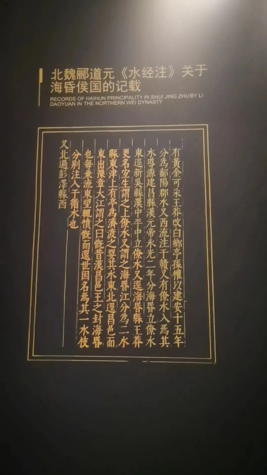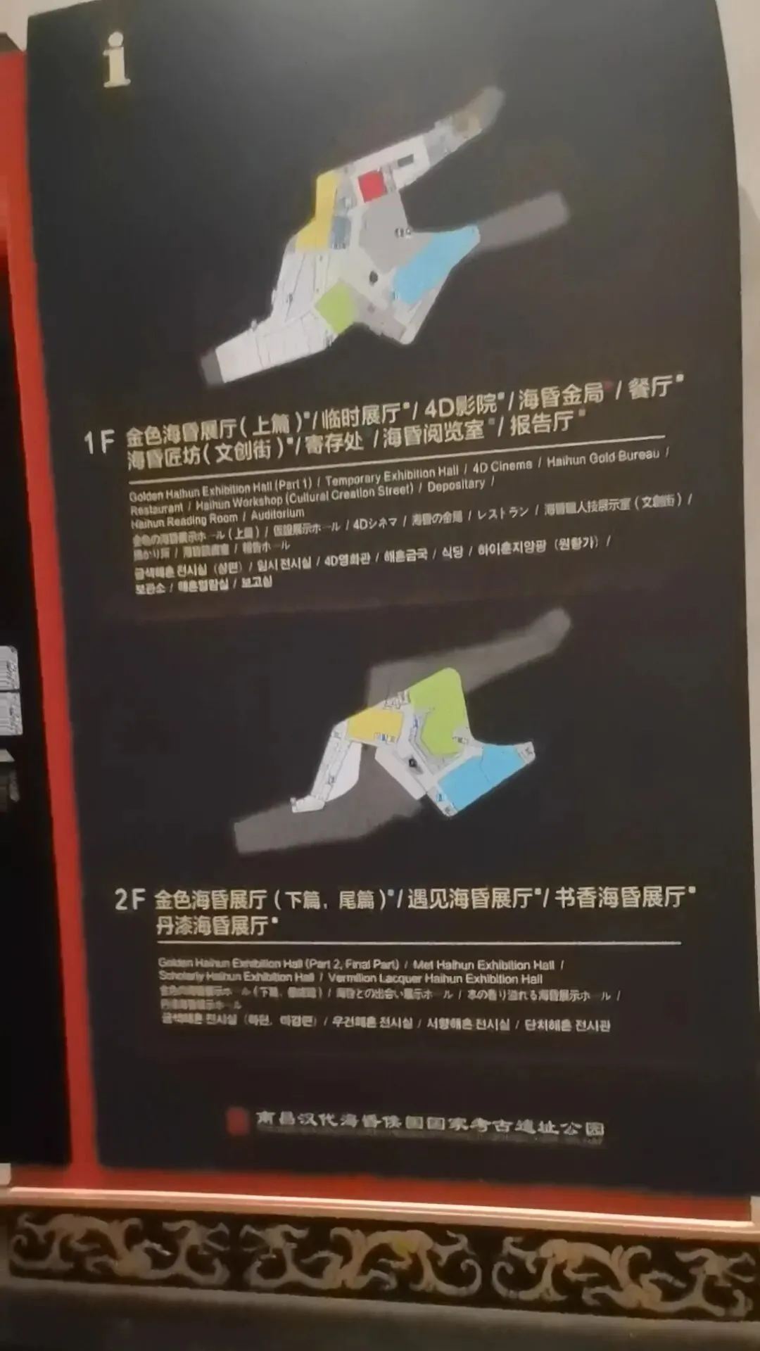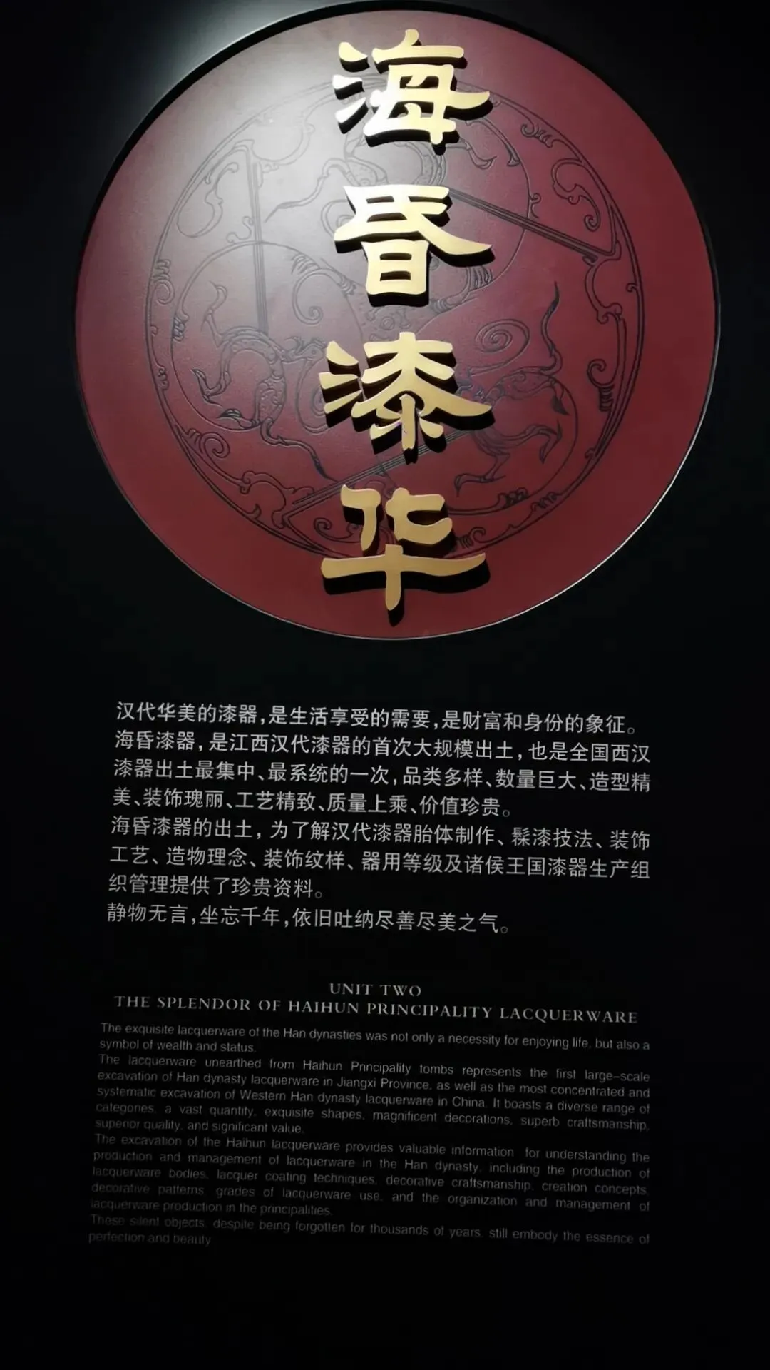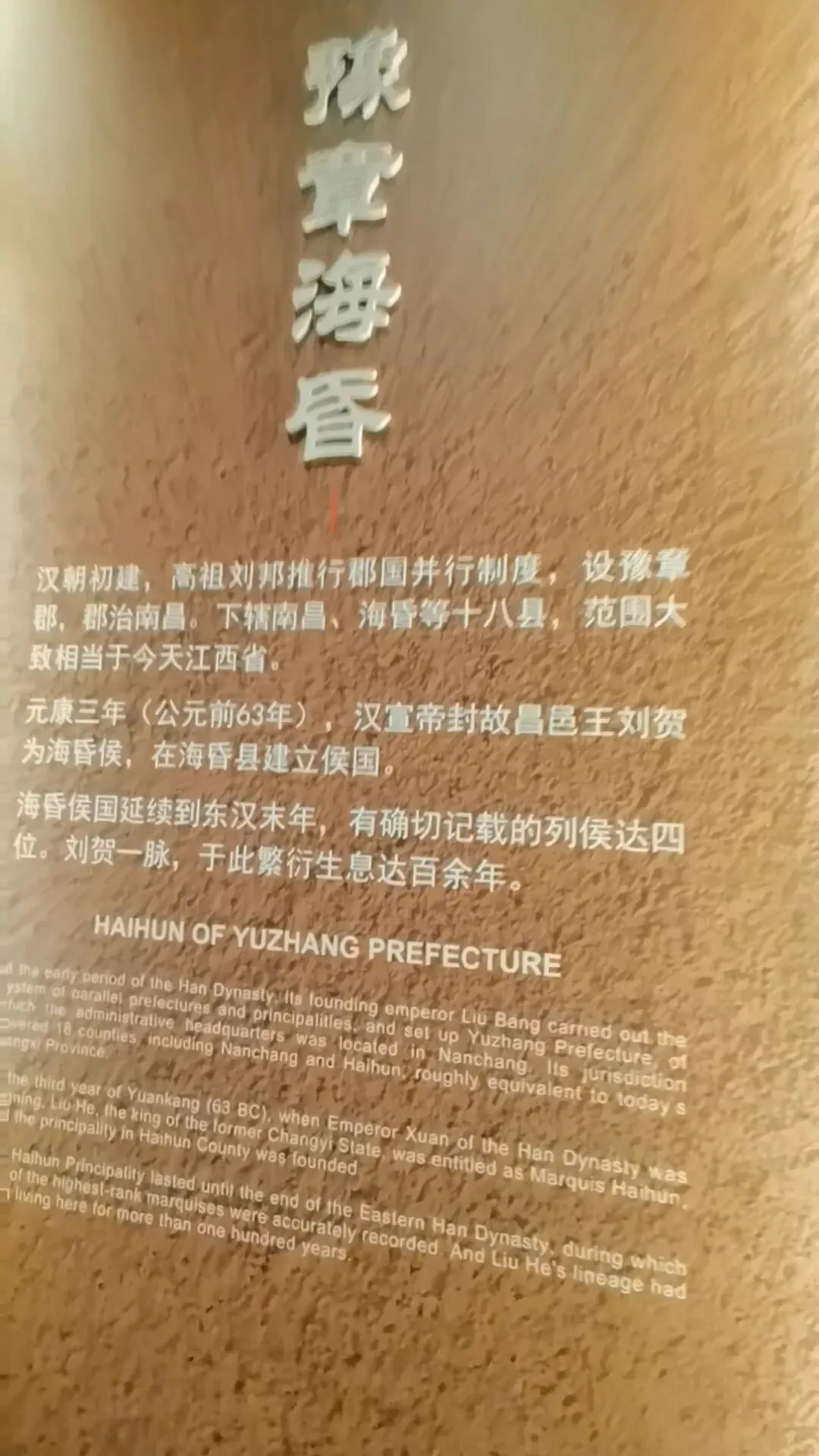 位置:园区大门两侧;仿汉代海昏紫金城阙楼,阙身装饰汉代龙、凤、云气纹样,是入园第一道标志性景观。购票可以在网上购买,如果不需要乘坐观光车的,就不需要进游客中心了,直接在游客中心正门左侧有个小路直接可以步行前往海昏侯博物馆,步行大约2公里时间20分钟左右,不行其实挺好的,一路走走还可以看看路上的风景这对神兽为汉代典型的天禄、辟邪(也被视作瑞兽/镇墓兽),造型源自海昏侯墓出土的神兽玉饰与铜当卢纹样,是汉代贵族用以驱邪避凶、守护陵寝与侯国威仪的象征。刘贺(前92—前59年),汉武帝之孙,昌邑王刘髆之子;墓中出土的「刘贺」玉印是确认墓主身份的铁证第一代海昏侯、西汉废帝刘贺的青铜立像;序厅中央高台上,背后是巨幅铜版画,讲述其「王—帝—民—侯」的跌宕人生;无真人容貌存世,为参考汉代服饰、文献记载+艺术创作的形象这枚和田白玉质地的印章是海昏侯墓的核心镇馆之宝,也是确认墓主身份的铁证。它出土于主棺内刘贺遗骸腰部,印面阴刻篆书“刘贺”二字,印纽为高浮雕螭龙,既符合汉代“方寸之印”的规制,又以螭龙暗合其皇族身份。作为汉印艺术的典范,它不仅见证了刘贺“王—帝—侯”的跌宕人生,更印证了西汉丝绸之路的玉料流通与大汉文明的工艺高度,现展于南昌汉代海昏侯国遗址博物馆主馆核心展厅。两千多年前,他用最规整的汉隶,写下向朝廷请安、缴纳酎金的公文,字里行间满是侯国对皇权的恭敬。它是目前发现的等级最高的汉代公文原本,每一道木纹、每一笔隶书,都在诉说着大汉的礼仪与秩序,也见证了刘贺跌宕的一生。今天,它静静躺在海昏侯博物馆,等着我们读懂那段被时光封存的历史海昏侯墓历经这么长时间,没被盗掘一个很重要的原因就是它一直存在于湖底下刘贺墓西侧的真车马陪葬坑,是长江以南地区首次发现的汉代王侯级真车马坑,陪葬有5辆独辀安车、20匹马,代表了汉代王侯出行最高等级的“驷马高车”。墓中车马库还出土2辆军礼性质的模型乐车、6辆轺车及御车木俑,其中乐车配备青铜錞于、青铜铙、钟和建鼓,这种“金车”与“鼓车”搭配的西汉列侯豪华马车,为国内首次发现。车马上的装饰物工艺繁复华美,彰显了汉代王侯的尊贵身份。刘贺十分注重美食与美器,对炊具、食具、酒具,以及室内陈设的灯具、熏炉、席镇等均颇为讲究。墓中出土了大量配合雅宴的精致乐器,包括两组编钟、一组编磬,以及琴、瑟、排箫、笙和数十尊伎乐俑组成的大型歌舞管弦乐队,直观再现了西汉列侯的用乐制度与风雅排场。西汉视黄金为上币,流通饼形金、金钣、褭蹏金、麟趾金等,皇帝赏赐功臣动辄赐金上万。海昏侯刘贺墓出土黄金器物478件(含饼形金、褭蹏金、麟趾金、金钣),合计115公斤;其子刘充国墓亦出土褭蹏金2件,这是迄今中国汉墓考古发现黄金数量最多的一次,见证了西汉“黄金时代”的繁荣。此外,墓中还出土十余吨五铢钱币,堆积如山,实证了刘贺的巨额财富。这是南昌汉代海昏侯国遗址博物馆展示的孔子像漆衣镜出土现场图,这件文物是目前已知最早的孔子形象实物。它出土于海昏侯刘贺墓主椁室,镜背绘有孔子及其弟子像,并附有人物传记文字,是西汉“独尊儒术”背景下的重要物证,也为研究汉代服饰、绘画与思想文化提供了珍贵资料。因原件仍在修复中,馆内多以复制品展出。这里是一些互动的,其中感觉这个投壶还是比较有意思的海昏侯墓出土漆器以红黑为基调,点缀黄、白、褐、绿、金、银等色,画面灵动多彩,生动描绘山川云气、神怪仙兽与社会生活;装饰技艺涵盖素髹、彩绘、釦器、贴金、锥画、镶嵌等,尽显汉代匠人巧思。器物上的书刻文字浑厚高古,尽显隶书风骨,既体现了漆器“坚牢于质,光彩于文”的特质,也完整呈现了西汉髹漆工艺的高超水平。出口地方,有相关的纪念钞自助购买,会经过一个很大的文创店,可以购买海昏侯相关的文创品