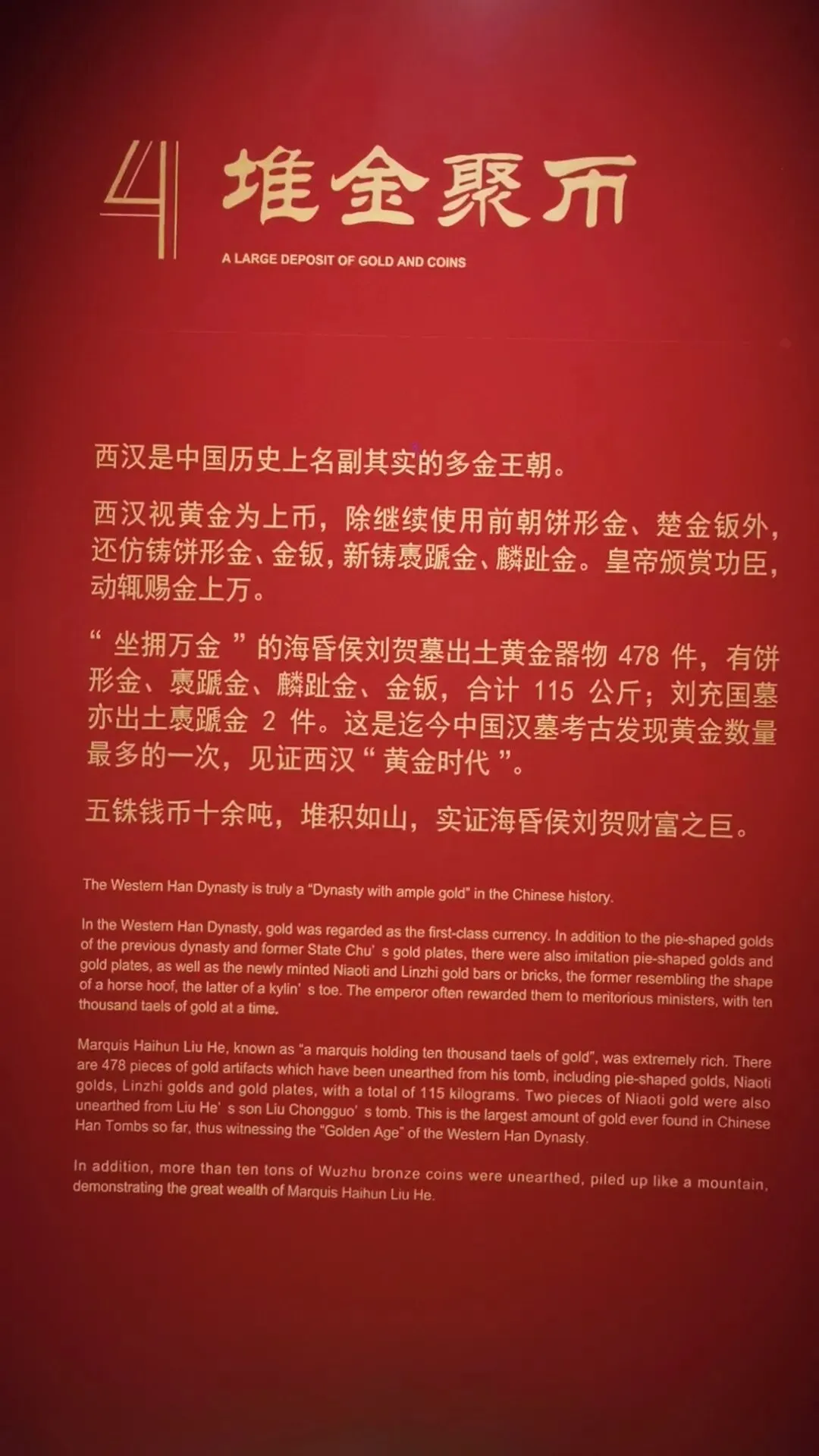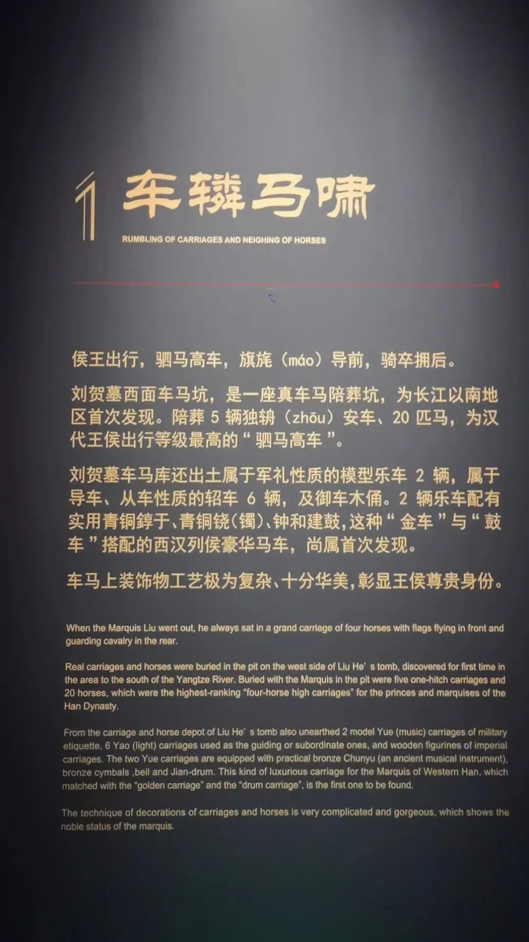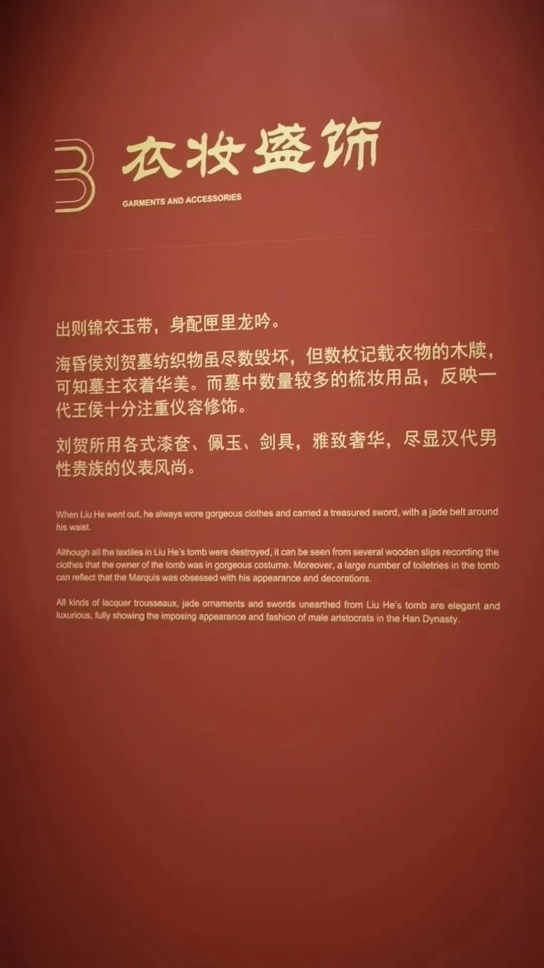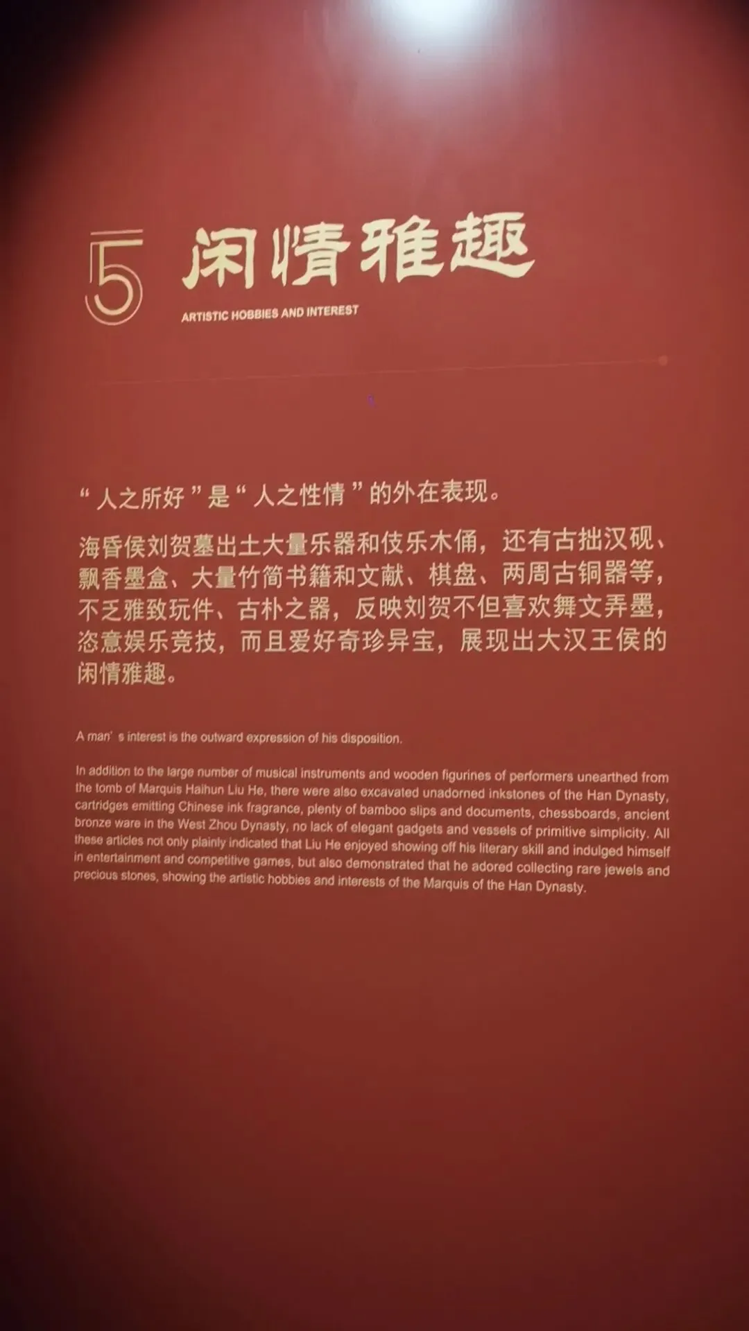 位置:园区大门两侧;仿汉代海昏紫金城阙楼,阙身装饰汉代龙、凤、云气纹样,是入园第一道标志性景观。购票可以在网上购买,如果不需要乘坐观光车的,就不需要进游客中心了,直接在游客中心正门左侧有个小路直接可以步行前往海昏侯博物馆,步行大约2公里时间20分钟左右,不行其实挺好的,一路走走还可以看看路上的风景这对神兽为汉代典型的天禄、辟邪(也被视作瑞兽/镇墓兽),造型源自海昏侯墓出土的神兽玉饰与铜当卢纹样,是汉代贵族用以驱邪避凶、守护陵寝与侯国威仪的象征。刘贺(前92—前59年),汉武帝之孙,昌邑王刘髆之子;墓中出土的「刘贺」玉印是确认墓主身份的铁证第一代海昏侯、西汉废帝刘贺的青铜立像;序厅中央高台上,背后是巨幅铜版画,讲述其「王—帝—民—侯」的跌宕人生;无真人容貌存世,为参考汉代服饰、文献记载+艺术创作的形象这枚和田白玉质地的印章是海昏侯墓的核心镇馆之宝,也是确认墓主身份的铁证。它出土于主棺内刘贺遗骸腰部,印面阴刻篆书“刘贺”二字,印纽为高浮雕螭龙,既符合汉代“方寸之印”的规制,又以螭龙暗合其皇族身份。作为汉印艺术的典范,它不仅见证了刘贺“王—帝—侯”的跌宕人生,更印证了西汉丝绸之路的玉料流通与大汉文明的工艺高度,现展于南昌汉代海昏侯国遗址博物馆主馆核心展厅。两千多年前,他用最规整的汉隶,写下向朝廷请安、缴纳酎金的公文,字里行间满是侯国对皇权的恭敬。它是目前发现的等级最高的汉代公文原本,每一道木纹、每一笔隶书,都在诉说着大汉的礼仪与秩序,也见证了刘贺跌宕的一生。今天,它静静躺在海昏侯博物馆,等着我们读懂那段被时光封存的历史海昏侯墓历经这么长时间,没被盗掘一个很重要的原因就是它一直存在于湖底下刘贺墓西侧的真车马陪葬坑,是长江以南地区首次发现的汉代王侯级真车马坑,陪葬有5辆独辀安车、20匹马,代表了汉代王侯出行最高等级的“驷马高车”。墓中车马库还出土2辆军礼性质的模型乐车、6辆轺车及御车木俑,其中乐车配备青铜錞于、青铜铙、钟和建鼓,这种“金车”与“鼓车”搭配的西汉列侯豪华马车,为国内首次发现。车马上的装饰物工艺繁复华美,彰显了汉代王侯的尊贵身份。刘贺十分注重美食与美器,对炊具、食具、酒具,以及室内陈设的灯具、熏炉、席镇等均颇为讲究。墓中出土了大量配合雅宴的精致乐器,包括两组编钟、一组编磬,以及琴、瑟、排箫、笙和数十尊伎乐俑组成的大型歌舞管弦乐队,直观再现了西汉列侯的用乐制度与风雅排场。西汉视黄金为上币,流通饼形金、金钣、褭蹏金、麟趾金等,皇帝赏赐功臣动辄赐金上万。海昏侯刘贺墓出土黄金器物478件(含饼形金、褭蹏金、麟趾金、金钣),合计115公斤;其子刘充国墓亦出土褭蹏金2件,这是迄今中国汉墓考古发现黄金数量最多的一次,见证了西汉“黄金时代”的繁荣。此外,墓中还出土十余吨五铢钱币,堆积如山,实证了刘贺的巨额财富。这是南昌汉代海昏侯国遗址博物馆展示的孔子像漆衣镜出土现场图,这件文物是目前已知最早的孔子形象实物。它出土于海昏侯刘贺墓主椁室,镜背绘有孔子及其弟子像,并附有人物传记文字,是西汉“独尊儒术”背景下的重要物证,也为研究汉代服饰、绘画与思想文化提供了珍贵资料。因原件仍在修复中,馆内多以复制品展出。这里是一些互动的,其中感觉这个投壶还是比较有意思的海昏侯墓出土漆器以红黑为基调,点缀黄、白、褐、绿、金、银等色,画面灵动多彩,生动描绘山川云气、神怪仙兽与社会生活;装饰技艺涵盖素髹、彩绘、釦器、贴金、锥画、镶嵌等,尽显汉代匠人巧思。器物上的书刻文字浑厚高古,尽显隶书风骨,既体现了漆器“坚牢于质,光彩于文”的特质,也完整呈现了西汉髹漆工艺的高超水平。出口地方,有相关的纪念钞自助购买,会经过一个很大的文创店,可以购买海昏侯相关的文创品