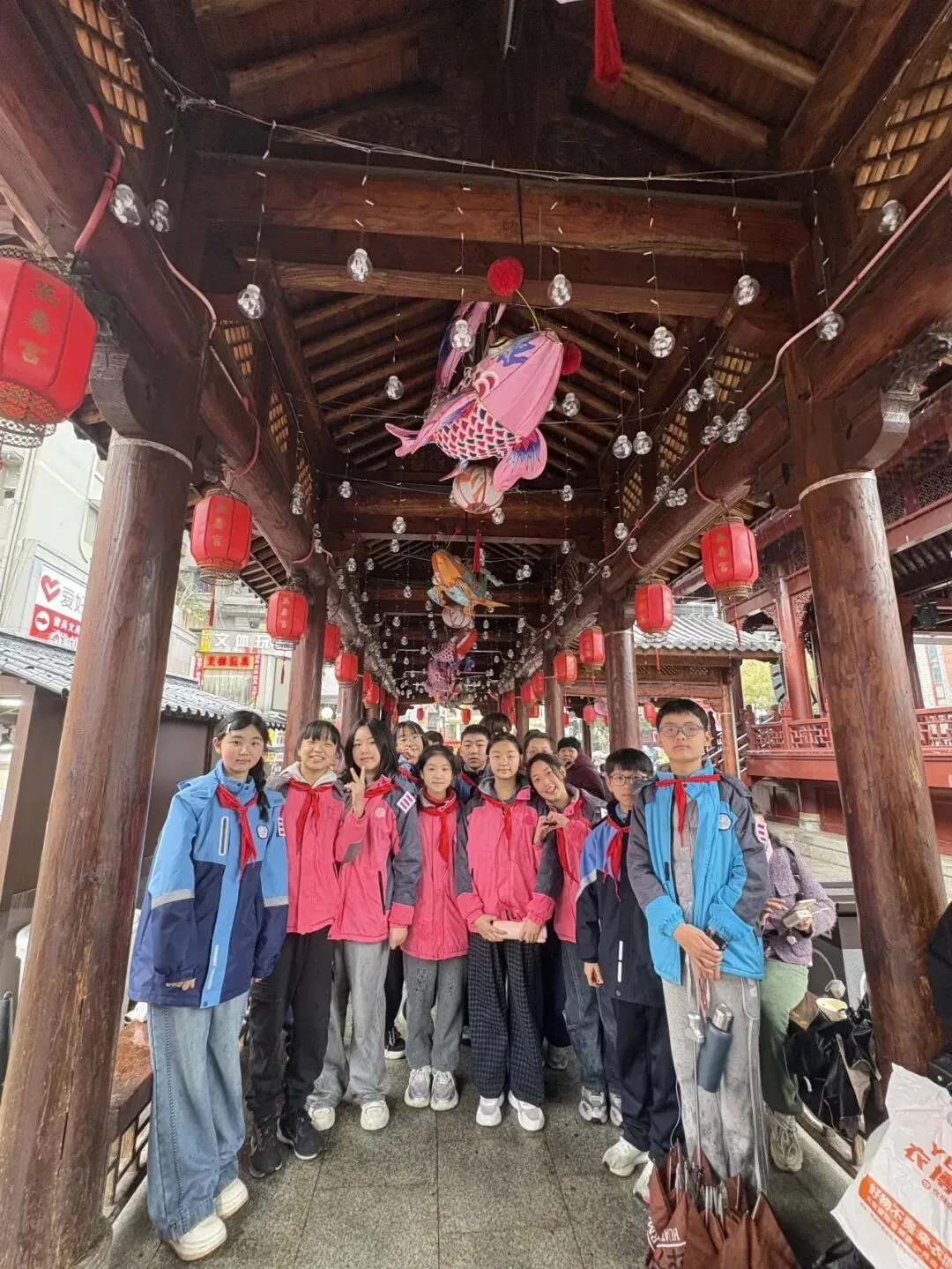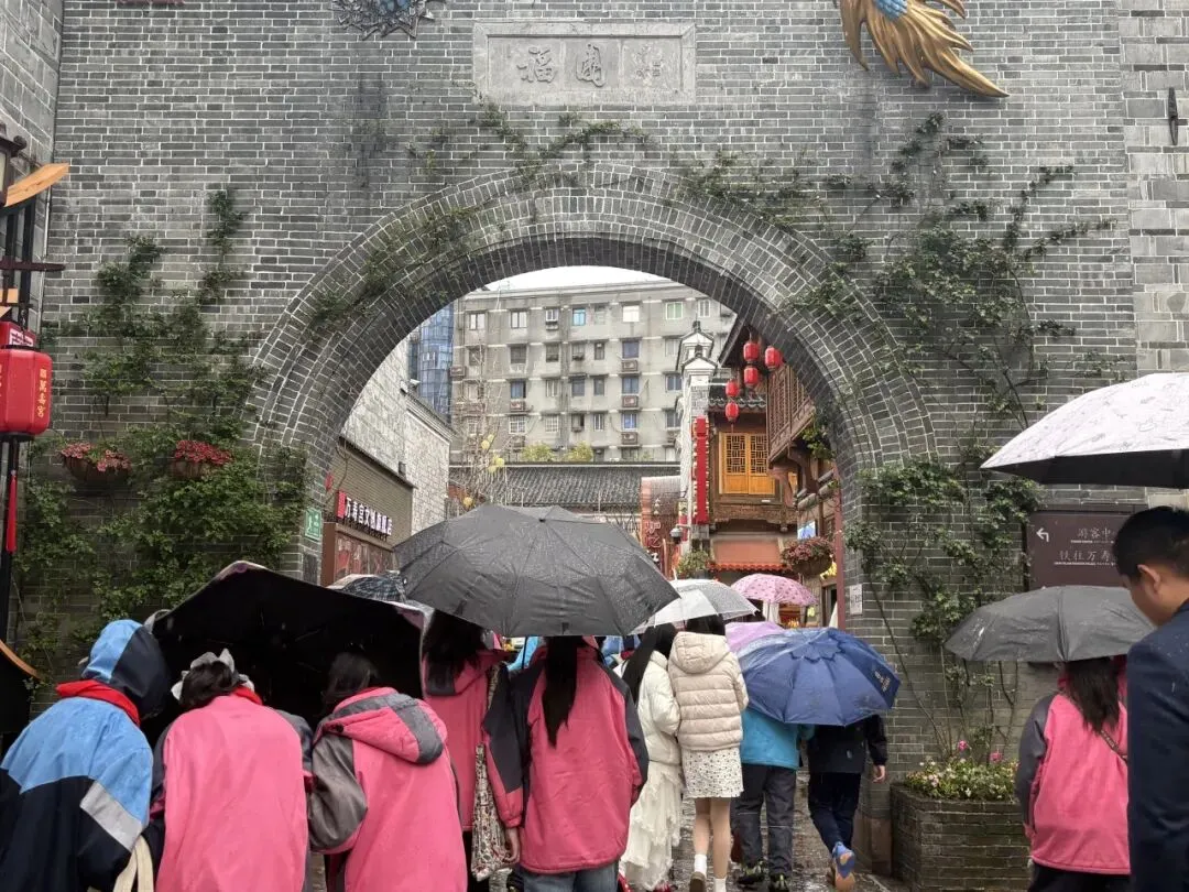 作为“赣鄱文化第一街”,万寿宫历史文化街区自开街以来已接待游客数千万人次,是南昌当之无愧的“城市会客厅”。同学们踏着斑驳的青石板路,穿梭在翘步街、棋盘街、合同巷等“三街五巷”之间,两旁是晚清赣派民居风格的建筑,灰墙黛瓦,飞檐翘角,仿佛穿越回了那个“商贾如云、货物如雨”的繁华年代。