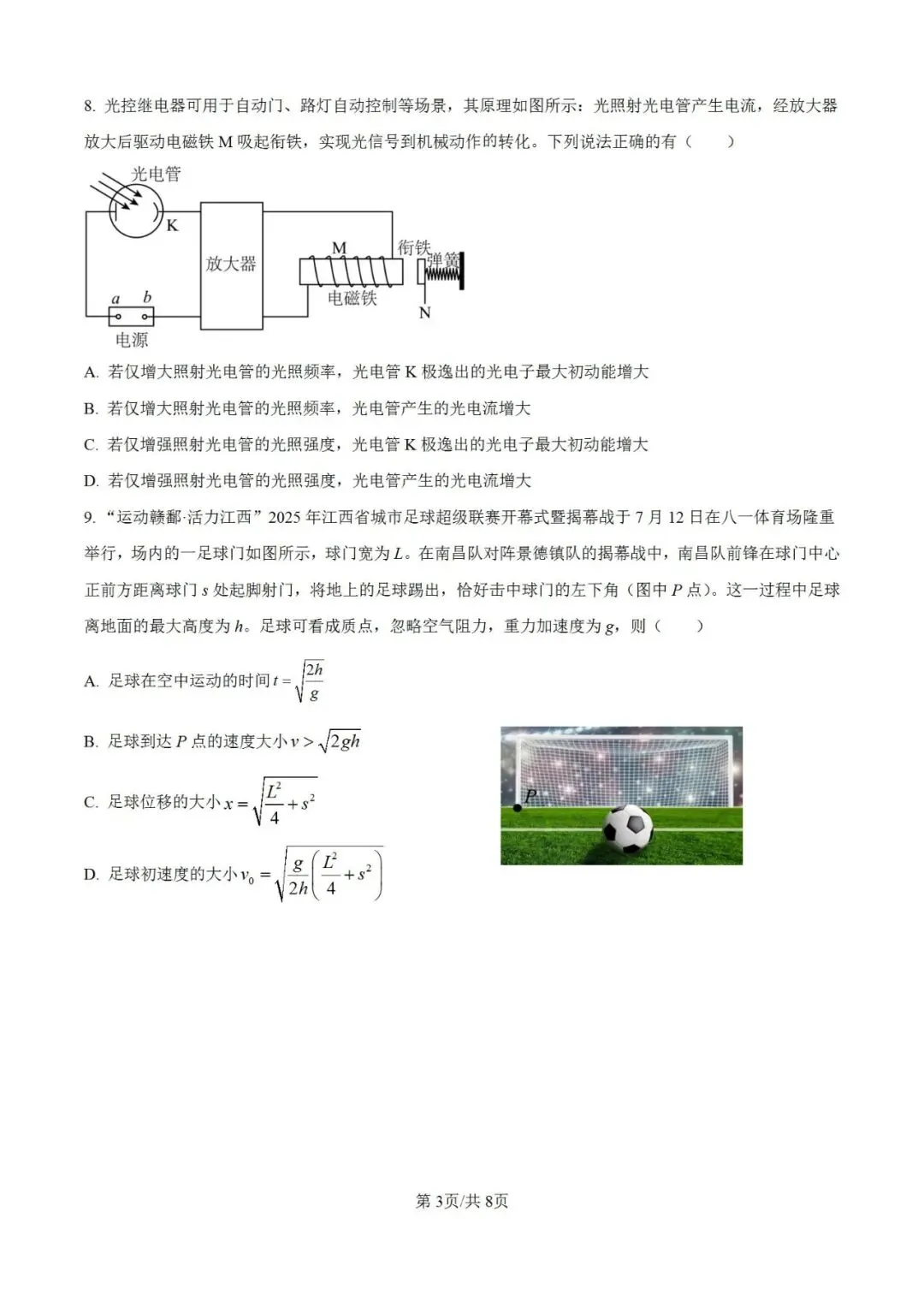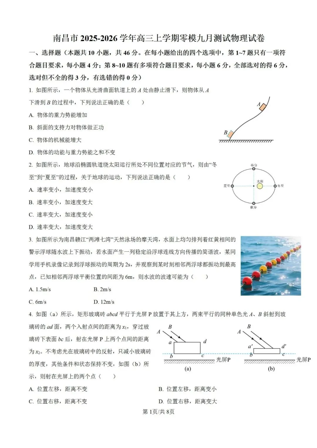 今天,要传上的试题是《江西省南昌市2025-2026学年高三上学期零模九月测试物理试卷》。