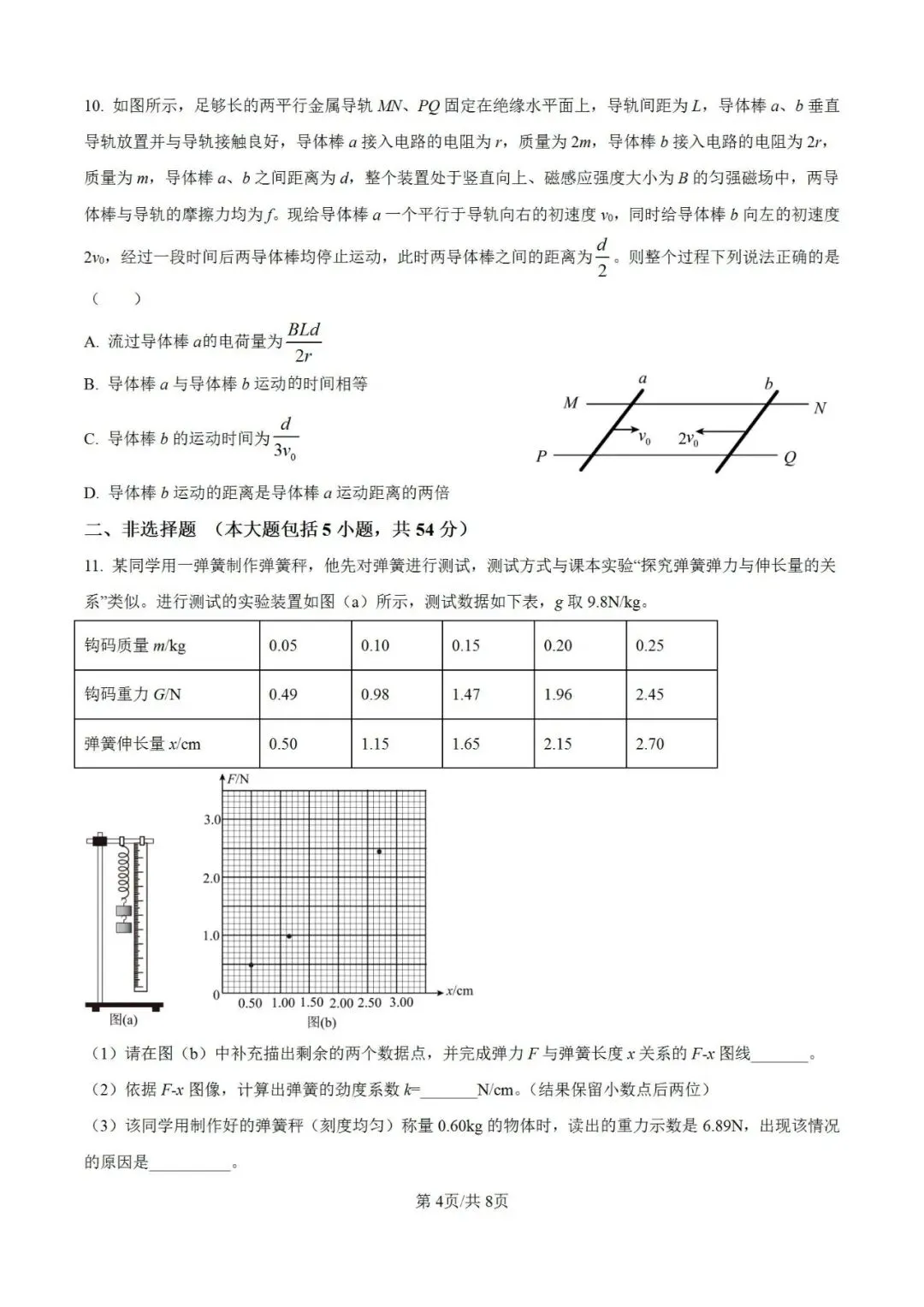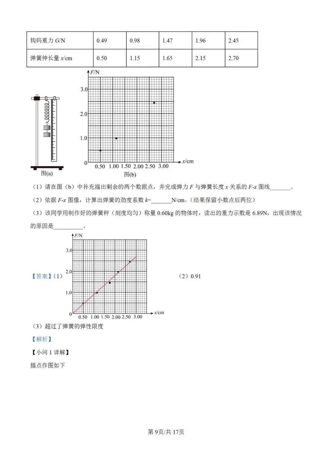 - 第11题“弹簧弹力实验”不仅包含图像绘制、劲度系数计算,还延伸至测量误差的成因分析(超出弹性限度)。
