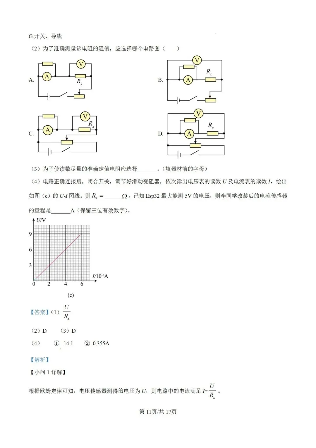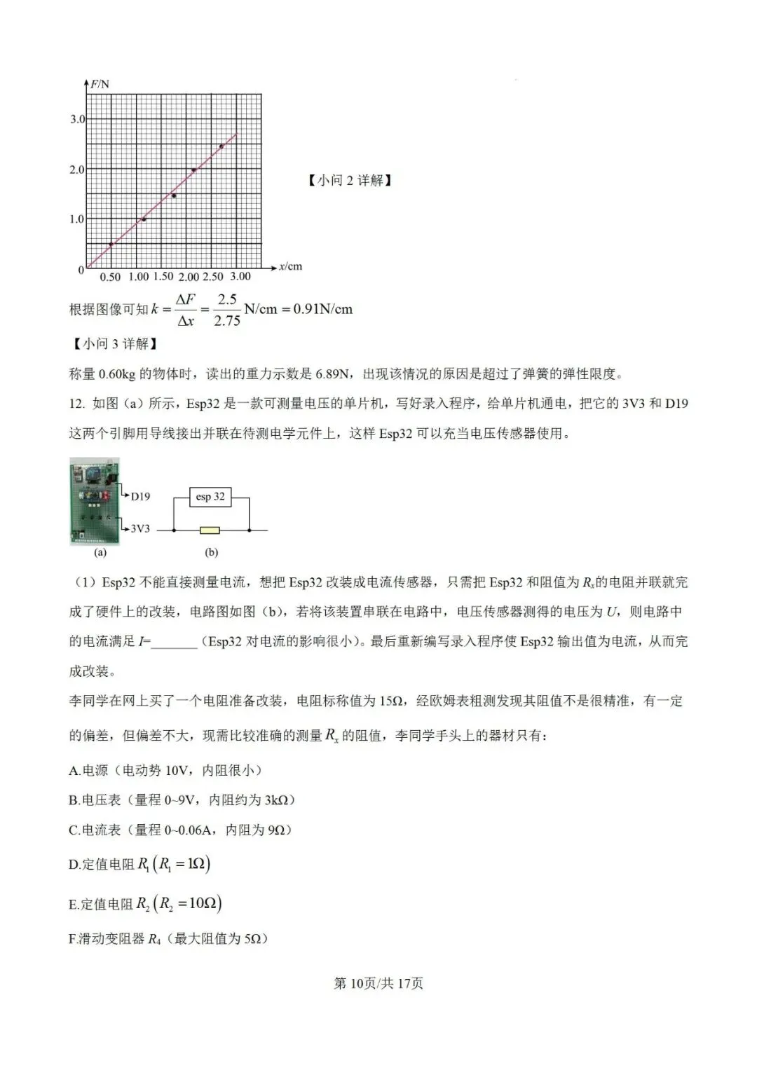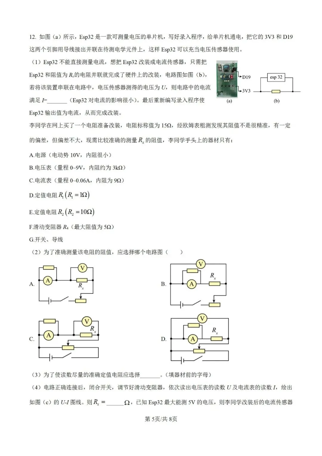- 第12题结合单片机改装电流传感器展开测量电路设计、器材选择与数据分析,体现新情境下的探究能力。