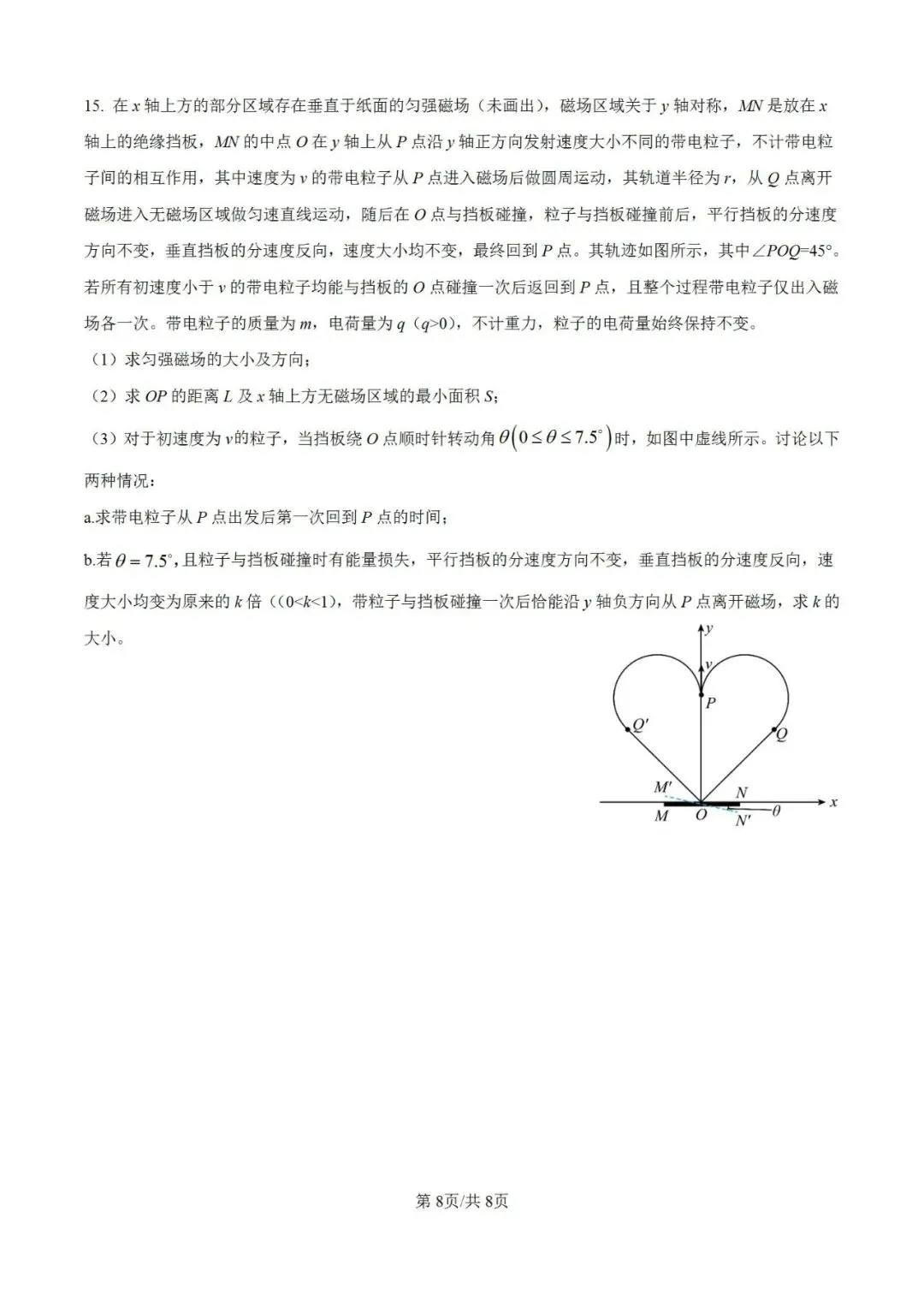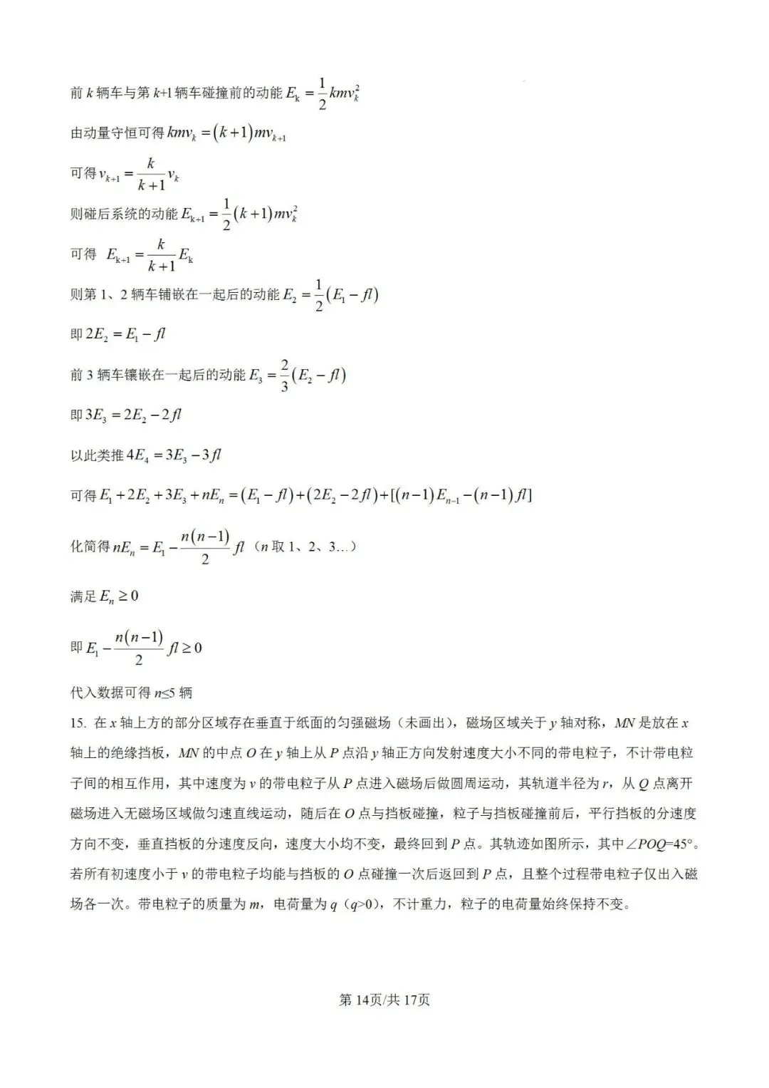 - 第15题围绕磁场轨迹综合粒子碰撞、边界设计与能量损失等问题,全面考察空间想象、数学推导与边界分析能力。