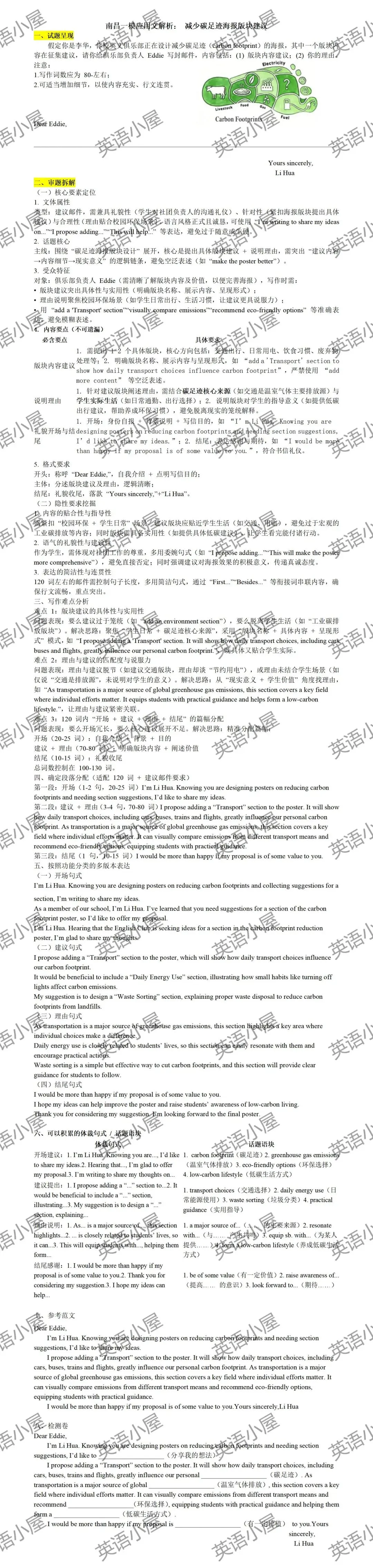 >南昌一模应用文解析: 减少碳足迹海报版块建议