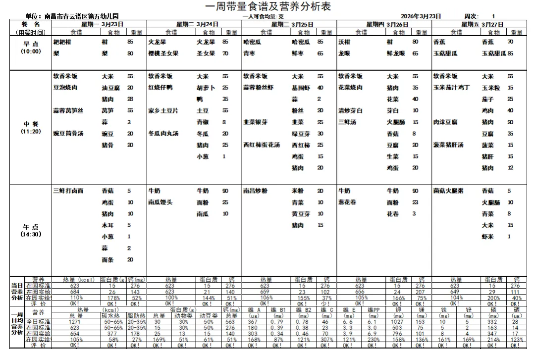 食品关乎每个宝贝的成长和健康,我园更是十分重视幼儿的饮食健康,为孩子们每日定制营养食谱,确保菜品新鲜、种类齐全,以保障幼儿饮食健康。