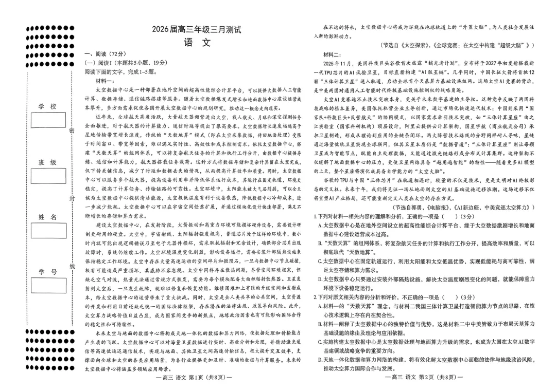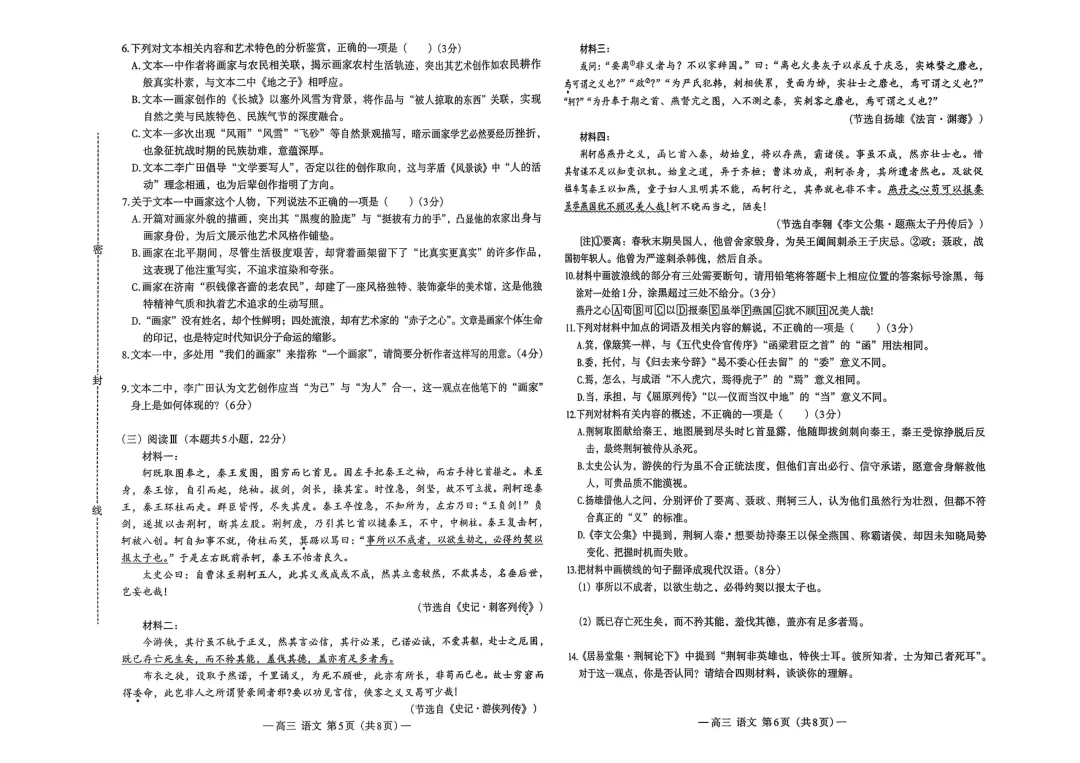 南昌一模:语文