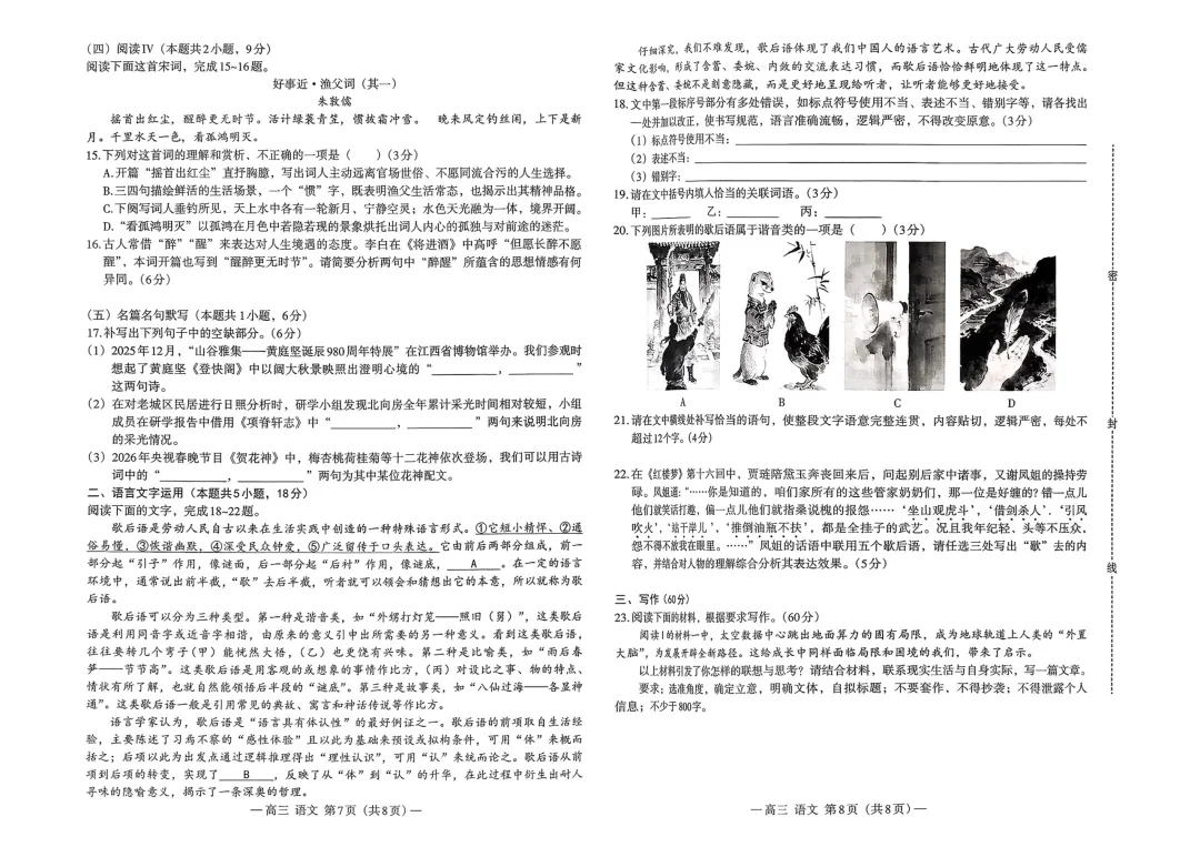 2026届江西南昌市高三下学期三月测试(一模)语文试卷及答案