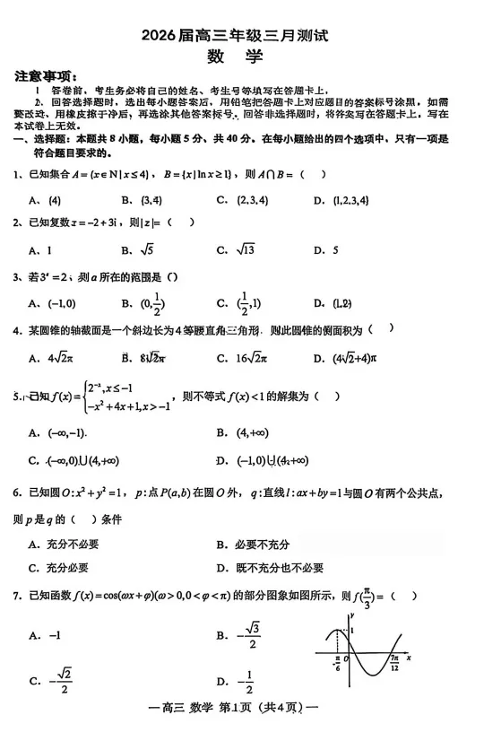 【高三】江西省南昌市2026届南昌市高三年级三月测试暨一模考试(一模)数学试卷(附答案)