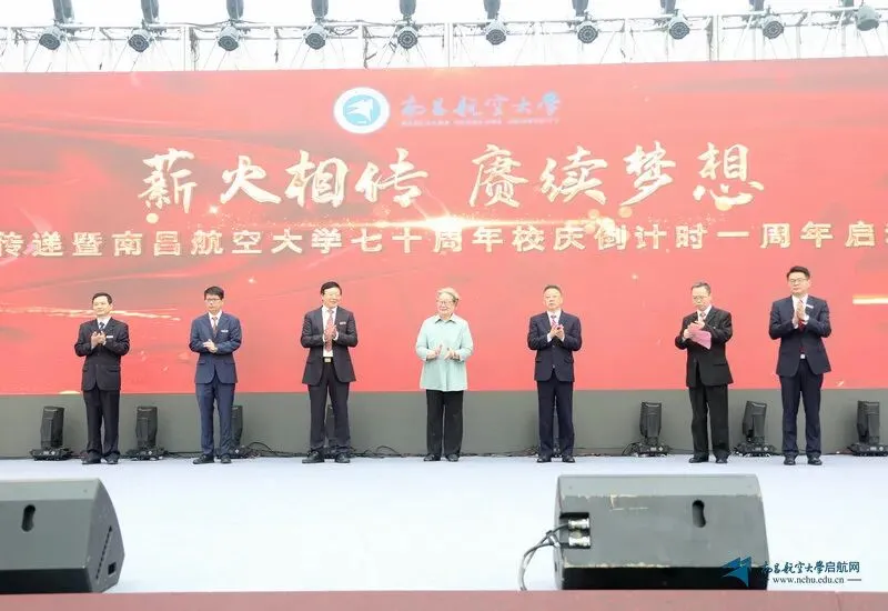 最后,黄懋衡老校长和全体校领导在舞台中间集体触摸电子屏,由党委书记罗嗣海宣布南昌航空大学70周年倒计时一周年正式启动。