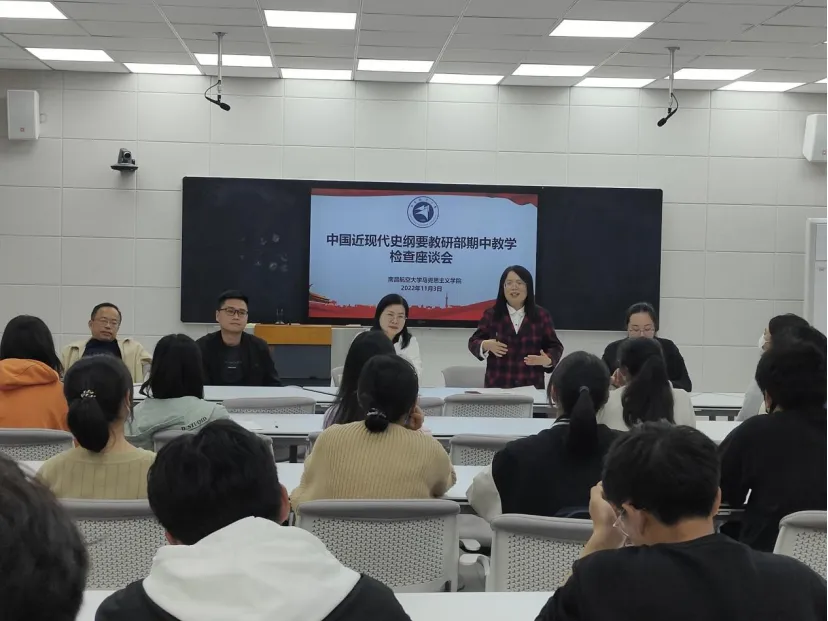 为进一步提升“中国近现代史纲要”教学实效,建设学生满意的思政课,南昌航空大学马克思主义学院于2022年11月3日在大学生活动中心345召开了“中国近现代史纲要”期中教学检查座谈会。会议由“纲要”教研部主任任云仙老师主持,教研部全体教师以及来自不同学院的学生代表与会。此次会议旨在了解学生对“中国近现代史纲要”课程教学的切实感受,听取学生关于课程教学内容、教学方法以及教学形式的评价和建议,从而不断创新教学模式,努力提升教学效果。
