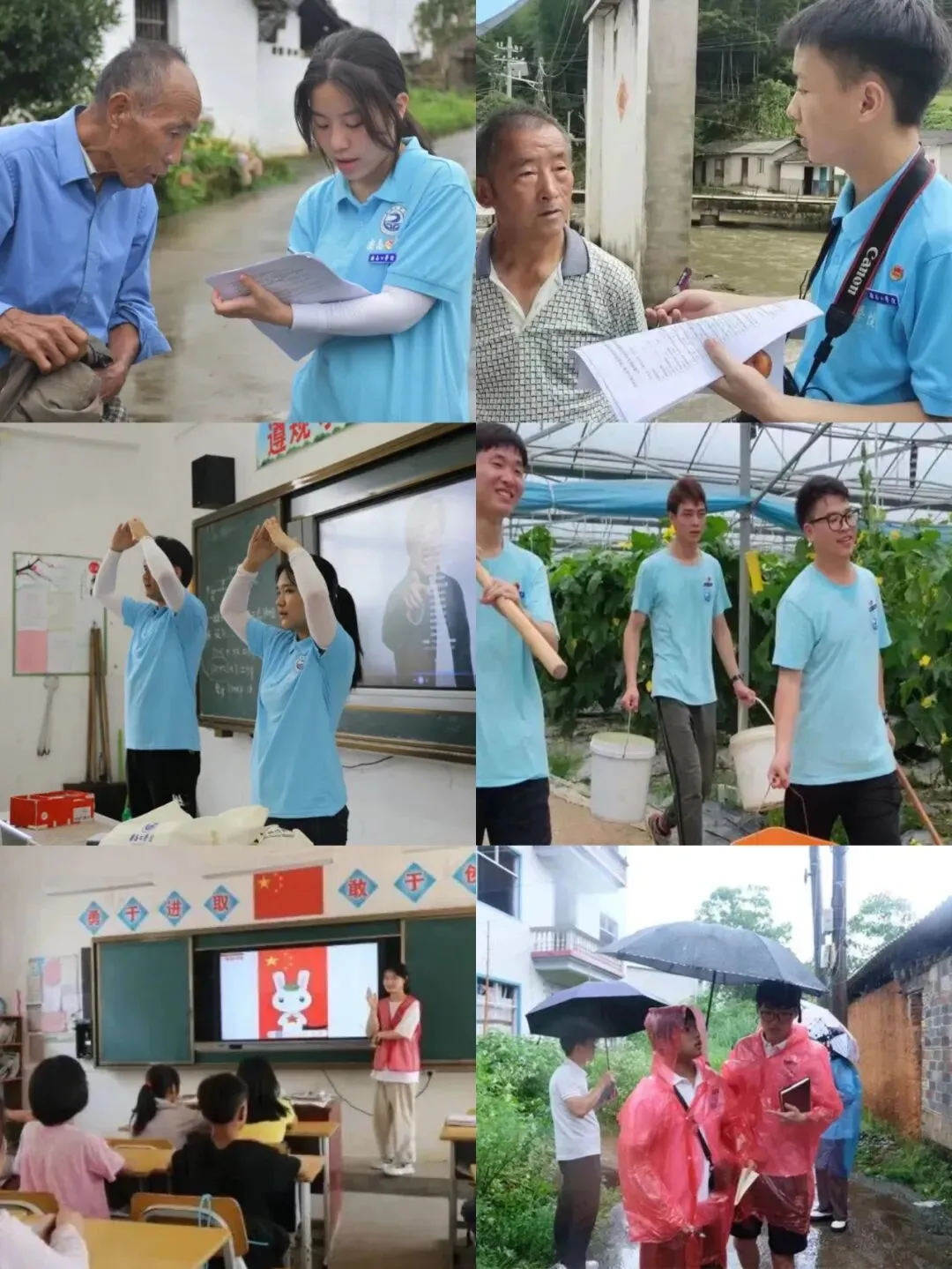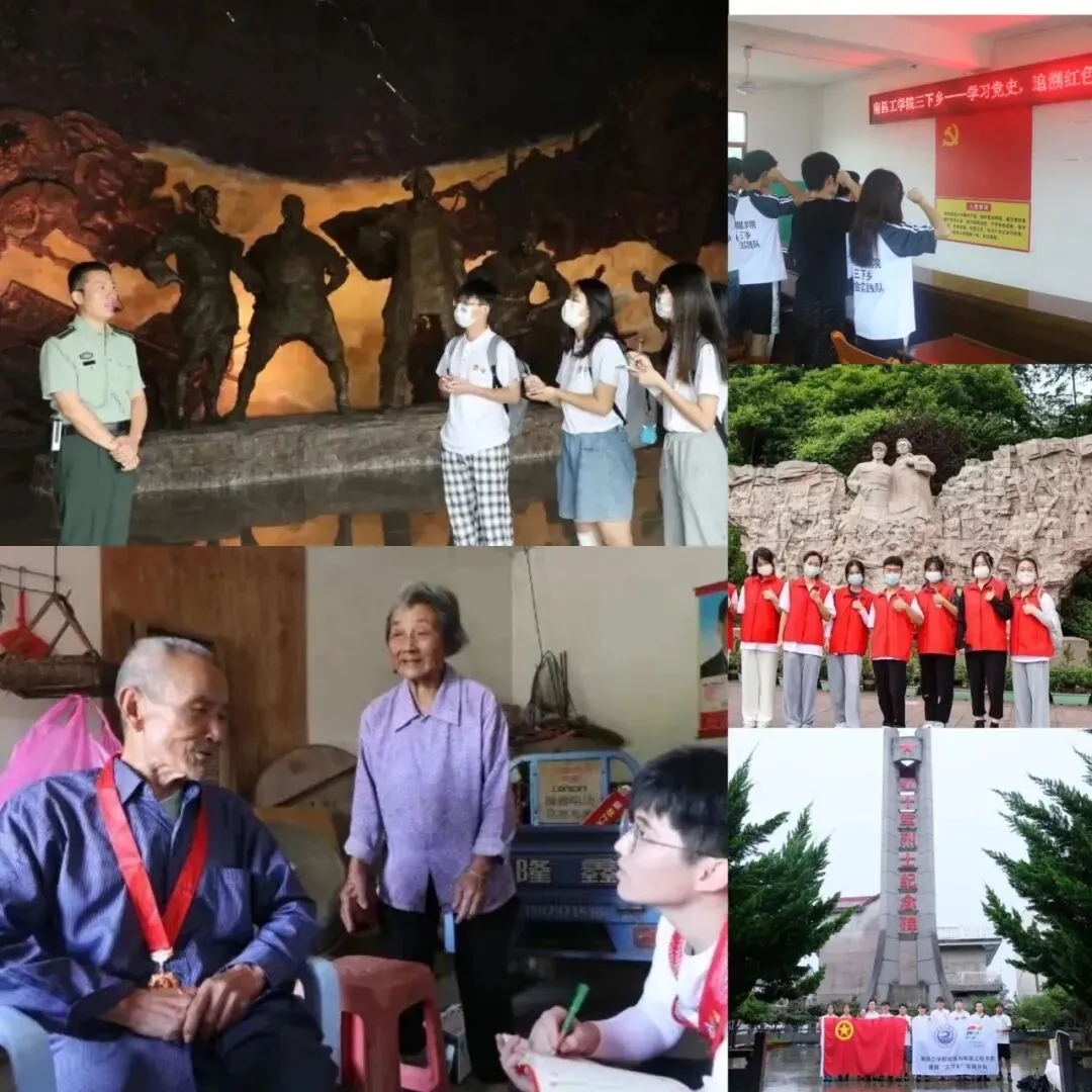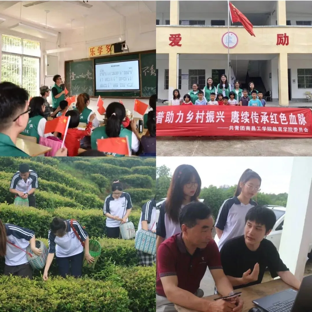 “一送里格红军 介支个下了山,秋雨里格绵绵 介支个秋风寒......”响亮而稚嫩的童音,在赣州市于都县井塘村小学响起,推广普通话助力乡村振兴“红歌音乐会”就此拉开序幕。绕口令、颂诗词、唱红歌,领略中华语言文字魅力;长征历史、红军故事、党史团史,诵读红色经典,跨越时空对话;探寻革命先辈红色足迹,感悟红色精神。他们以“红色文化+推普”形式助力乡村教育发展,用文化助力乡村振兴!网络扶贫,势在必行!送科技下乡,助乡村振兴。上好“大思政课”,做实干家!参观茶园基地、体验茶农生活、规划线上销售、拓宽售茶渠道、开展直播带货、介绍制茶工艺,他们用科技解锁乡村,用实干诠释振兴!承景风遗韵,以匠心筑梦。他们走进景德镇市浮梁县蛟潭镇胡宅村,在立足“红色、古色、绿色”三色资源的这一古老村庄,感受革命先辈的峥嵘岁月,领略青山梯田间闪烁的大地之光。挨家挨户寻访调研非遗文化,了解村民真实想法,展现乡村振兴战略实施成果!南昌工学院暑期“三下乡”社会实践活动,紧紧围绕“喜迎二十大 永远跟党走 奋进新征程”组建15支共200余人的社会实践团队,奔赴四方!通过科技支农帮扶、教育关爱服务、美丽中国实践、理论普及宣讲、文化艺术服务等内容赴赣州、抚州、景德镇等地开展形式多样的社会实践活动,为建设富裕美丽幸福现代化江西,贡献南工智慧和力量。让青春之花在乡村大地上绚丽绽放,用青春丈量大地,用奋斗谱写华章!炎炎烈日,他们扎根田间地头,学习采茶、弯腰劳作、直播带货、科技助农,风雨无阻。他们走访危房,术业专攻,“微”力助危改,研发设计,提升采摘效率,诠释专业赋能,发扬工匠精神,守护非遗文化。反诈宣传、文艺汇演、科普安全知识、走进SOS儿童村、暖心相许践行社会责任,深入乡村听师音,开展“以爱之名 暖心助学”活动。他们用“爱”践行青春誓言,助力乡村文明建设,提供高质量社会实践服务。在革命摇篮井冈山,强信仰之基,补精神之钙,探索新时代理想目标。在中央苏区反“围剿”战争纪念馆,他们感受这片无数英烈鲜血染红的热土,怀揣敬仰与崇敬!在红十军烈士纪念碑前,重温历史,缅怀先烈。在万安县潞田镇寨下村,他们邀请老党员讲述万安起义建立江西省第一个县级苏维埃政权的历史,跟随老党员面向党旗,重温入党誓词,深切感受这片红色热土的赤诚。他们将追寻足迹遍布红色摇篮,他们将红色基因渗进血液,浸入心扉。拜访老党员,聆听红色故事,重温红色经典。他们不断实践、不断创新、不断学习,以自己的方式传承红色基因,赓续红色血脉。喜迎二十大,奋进新征程。南工学子用青春挥洒汗水,用奋斗谱写新篇,秉持“忠信笃行 自强不息”的校训,以青春之名,深情告白伟大祖国!