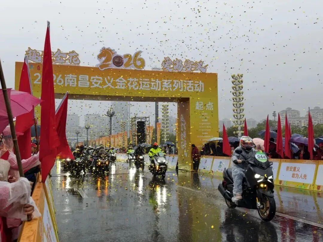 上午8时,随着雄壮的中华人民共和国国歌响起,全体人员奏唱国歌,2026南昌安义金花运动系列活动正式拉开帷幕。仪式现场,由先进人物、劳动模范、企业家代表、市民代表组成的发令嘉宾,用鸣笛的方式,分别为摩旅、骑行活动项目和欢乐跑、家庭跑、健步行活动项目发开始令。李松殿、高辉红、谭伯乐等领导在活动主道路旁,为整装出发的各项目选手挥旗致意、加油鼓劲,并对所有来参加活动的市民游客表示热烈欢迎。谭伯乐等领导还一同参加了欢乐跑活动项目。
