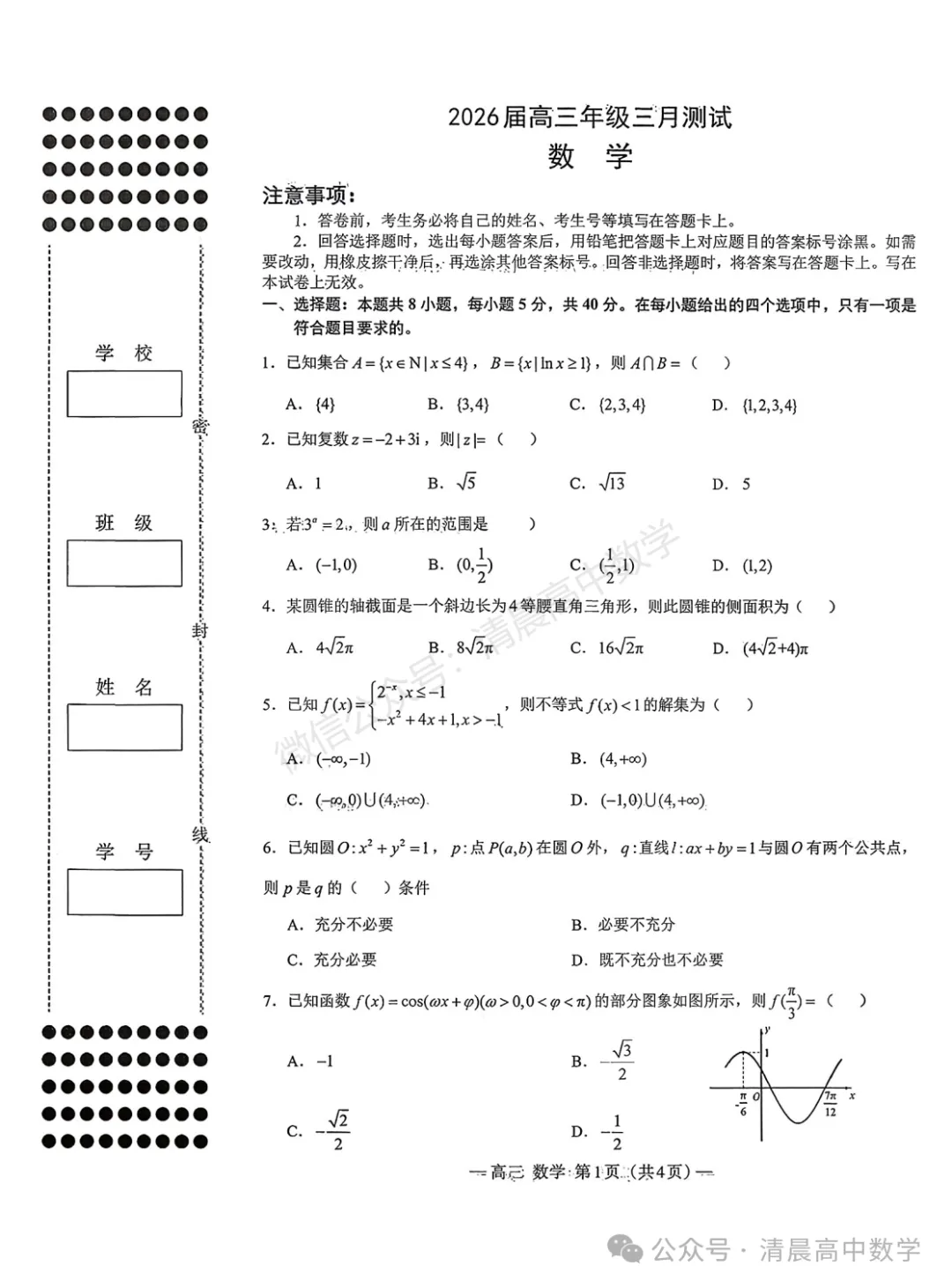 >【高三】江西省南昌市2026届高三一模考试数学含答案(word版)