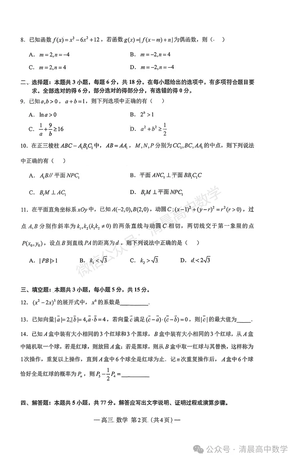 【高三】江西省南昌市2026届高三一模考试数学含答案(word版)