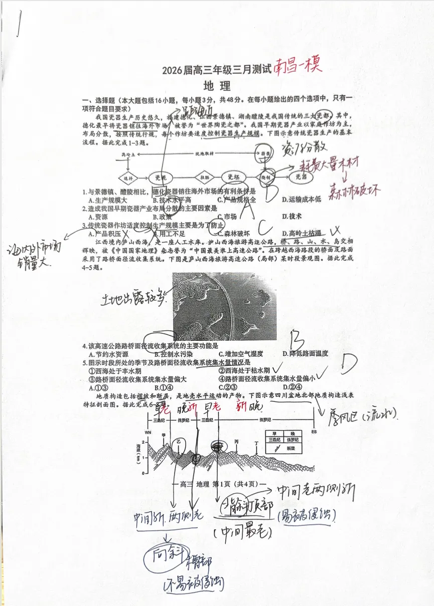 南昌一模地理试卷评析