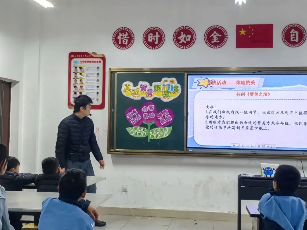 为切实关爱留守儿童心理健康,引导孩子学会欣赏他人、传递温暖,3月20日上午,振兴路小学开展心理团辅活动暨关爱留守儿童主题活动。本次活动以“学会赞美”为核心,由涂李辉老师主讲,通过趣味互动、故事感悟、情景讨论、游戏体验等环节,为孩子们带来一场温暖治愈的心灵之旅。