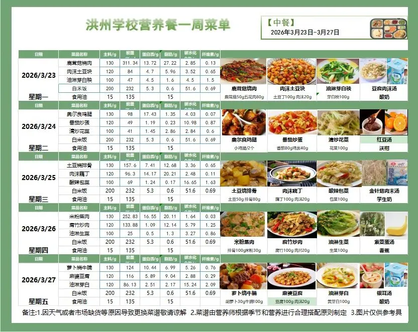 为了让您清晰了解孩子的在校饮食情况,现将本周营养食谱公布如下。