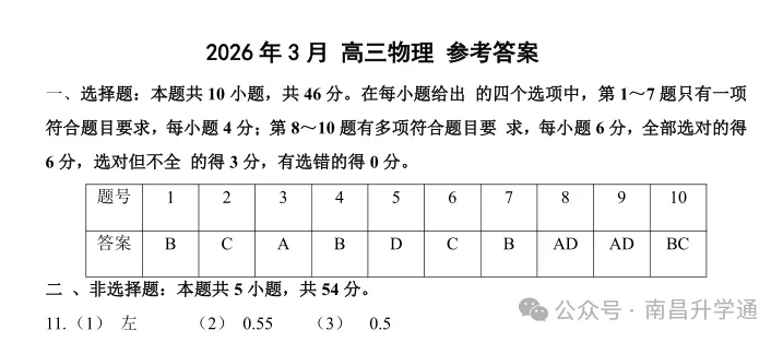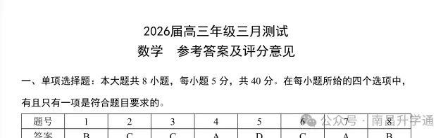 2026年南昌高三一模已经结束,南南第一时间带来了此次一模已考科目的真题+答案,赶紧收藏好来(每科考后第一时间更新,同学和家长可先收藏)~