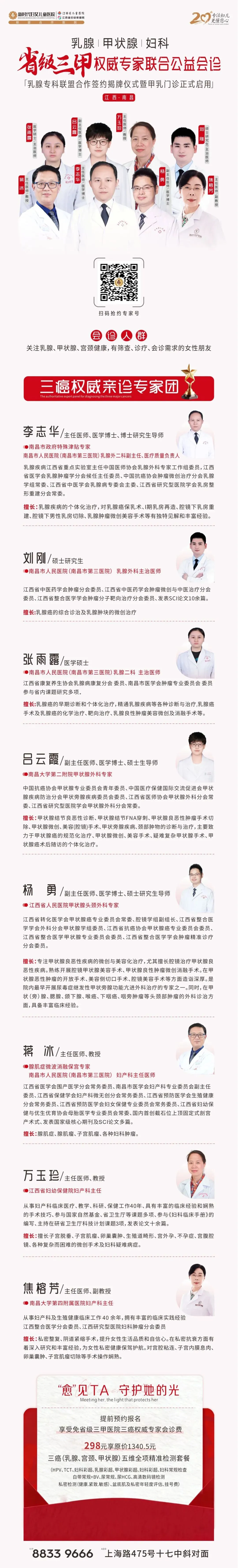 为进一步全面筑牢女性健康防线,我院还特别推出三癌筛查专属活动套餐,在宫颈癌、乳腺癌筛查基础上升级健康保障,筛查更全面、项目更精准、性价比更高,让关爱不止于两癌,为健康保驾护航。