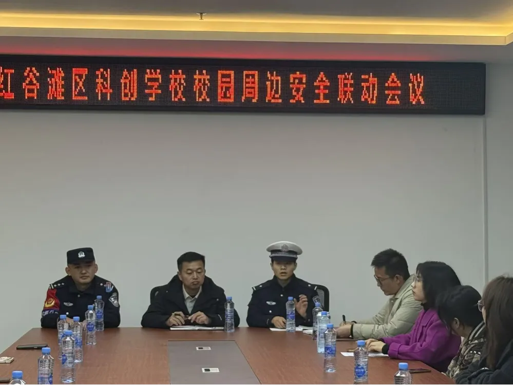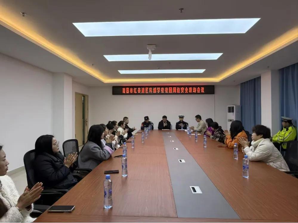 为进一步加强工作联动,深化家校警共育,筑牢校园安全防线,3月20日,南昌市红谷滩区科创学校召开校园周边安全联动会议暨新学期家委会会议。属地派出所、交警中队代表,学校领导班子和校级委会成员参会,围绕学生安全、校园管理及未来发展展开交流。会议由政教处谢满妹主持。