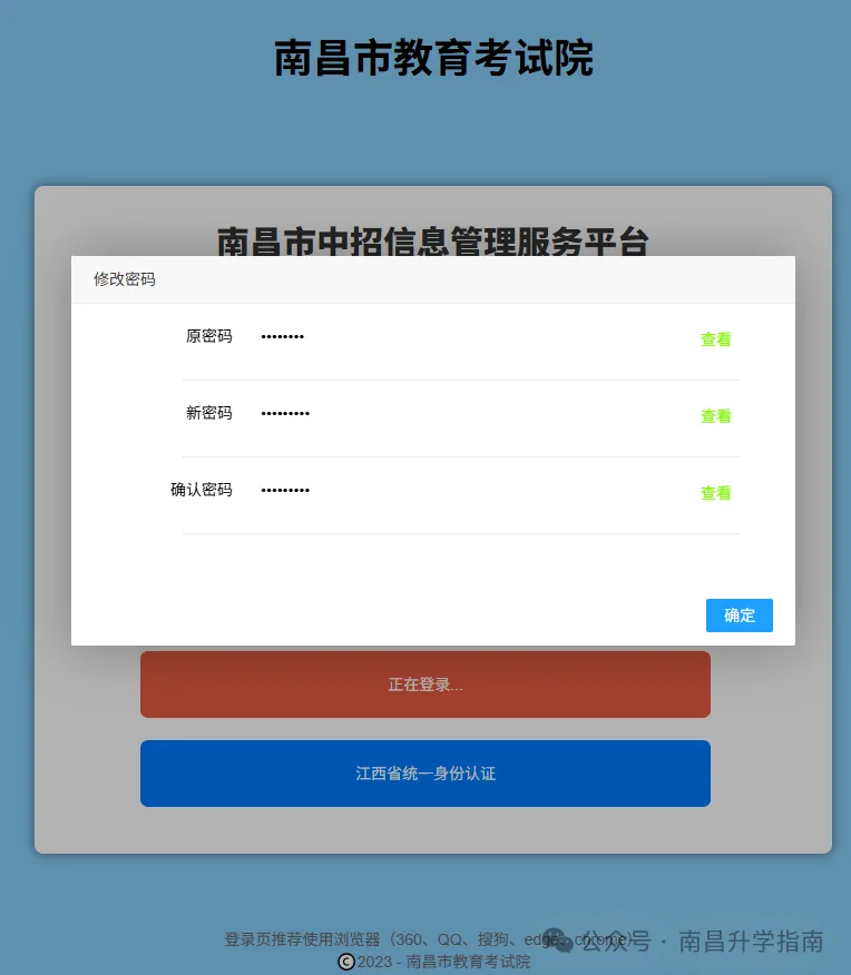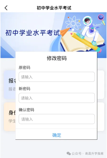 首次登录后,弹出修改密码界面,考生可修改密码。