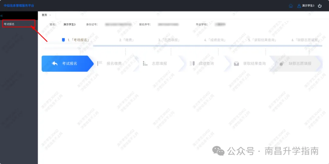 登录后,点击左侧【考试报名】模块,进入报名流程。