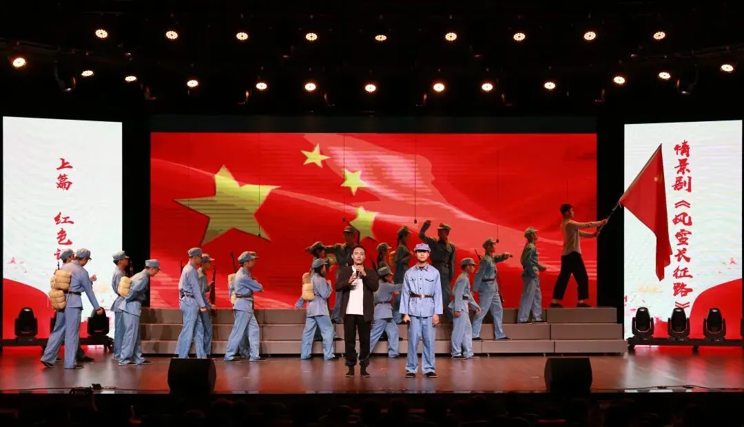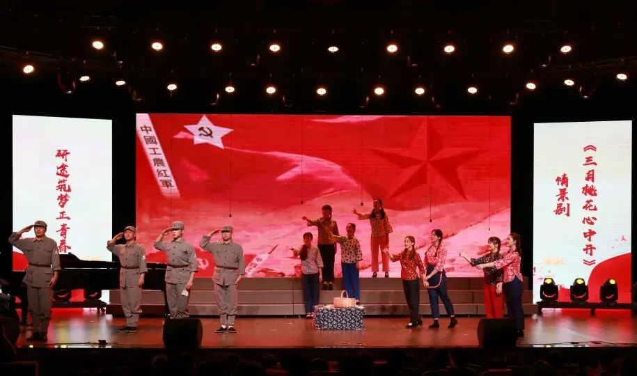 “行程万里,不忘初心”,言犹在耳。在“红色记忆”篇章中,航音学院歌唱《十送红军》,表达革命时期人民对红军的深厚感情以及对革命胜利的强烈期盼;测光学院和航音学院分别饰演的《风雪长征路》、《三月桃花心中开》让我们从长征精神中汲取力量,回望长征,缅怀长征。节目中穿插的党史问答互动环节不仅增加了与现场党员的联动,更激发了党员学习党史的热情。