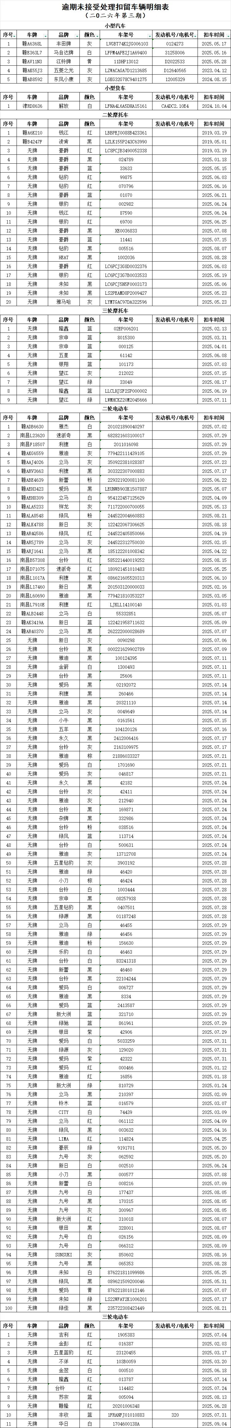 南昌市公安局交通管理支队关于对逾期未接受处理扣留车辆进行依法处理的公告