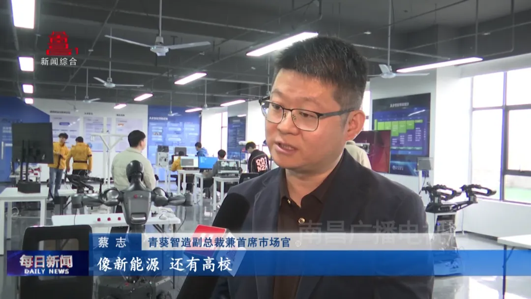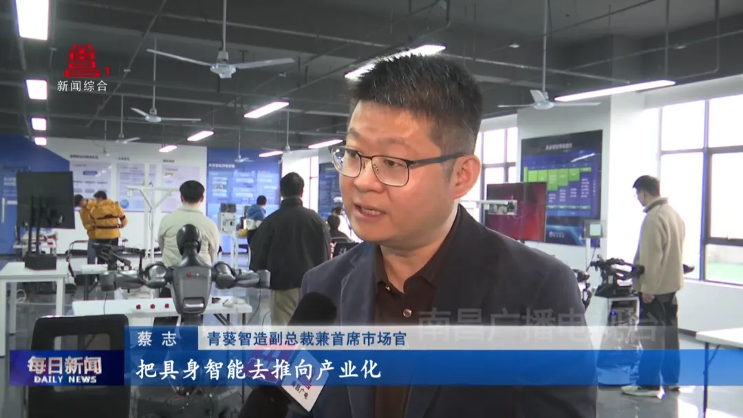 青葵智造副总裁兼首席市场官蔡志:“一方面我们去提供更多的产教融合的实训服务,把具身智能推向产业化和特定的一些产业,我们产生一些链接和合作,第二方面就是我们化学机器人,像新建区这边,比如赣锋锂业,新能源企业,包括制药企业,我们也会去跟他们深度地进行合作。”