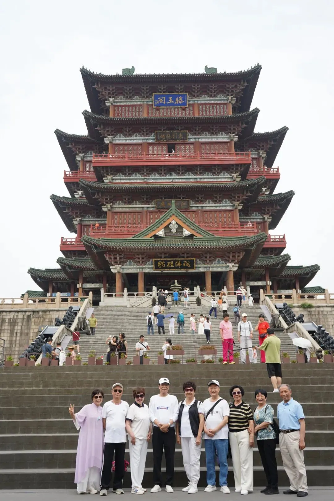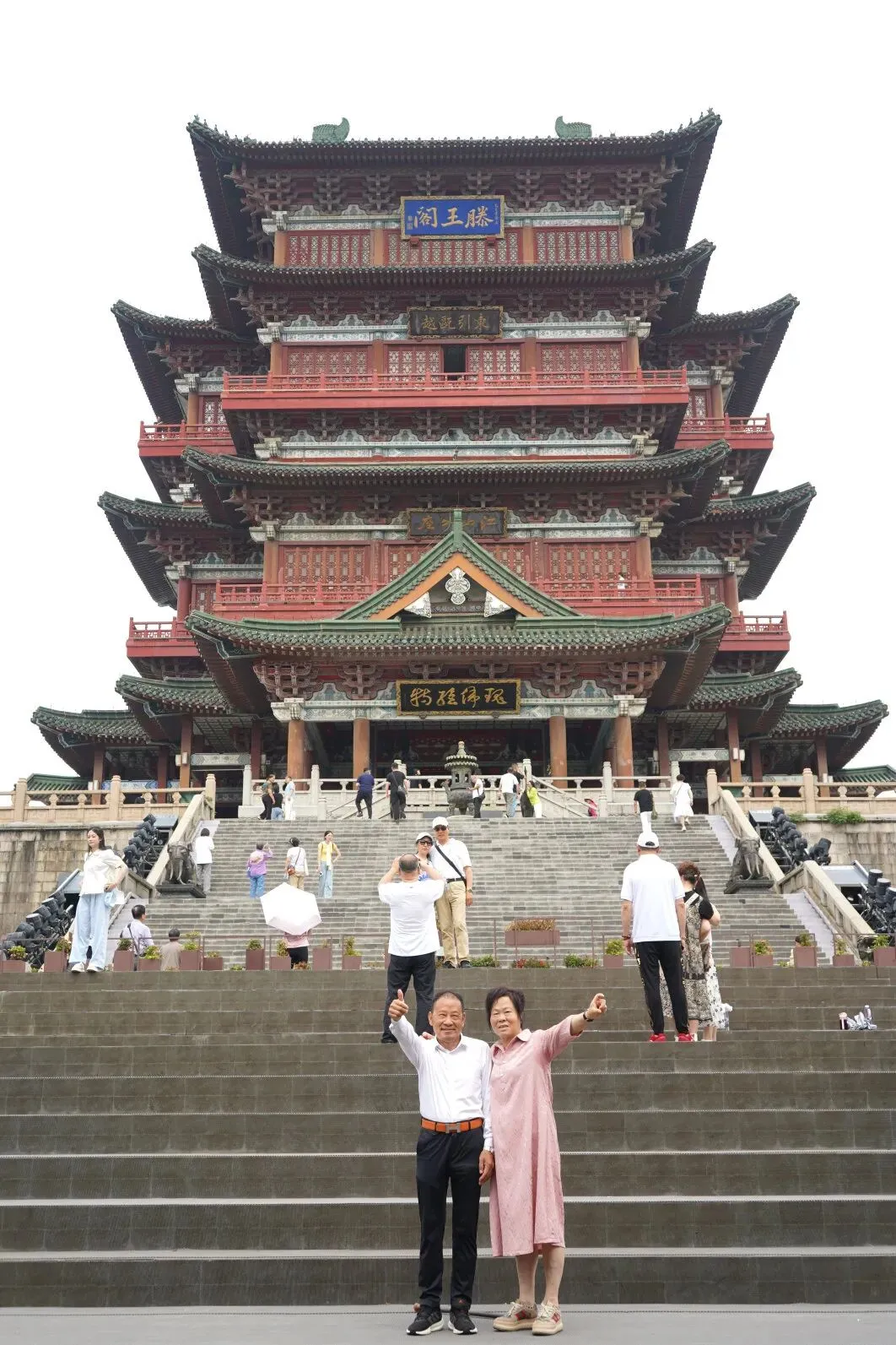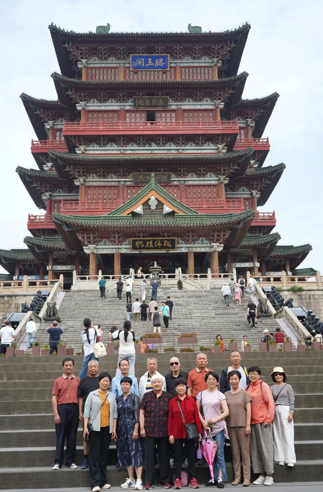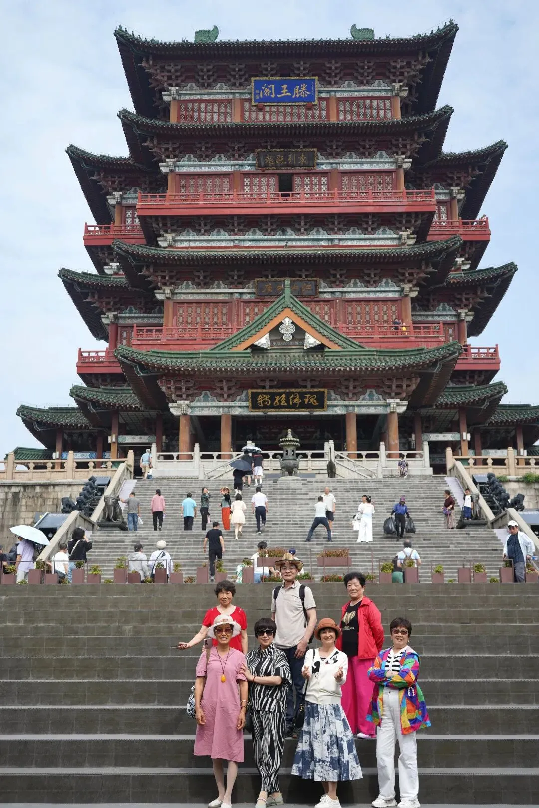 抬头仰望,只见滕王阁绿顶红墙,飞檐翘角,宛如一个巨人伫立在广场上,俯瞰着大地。