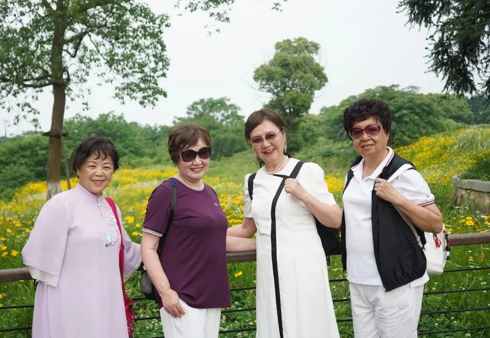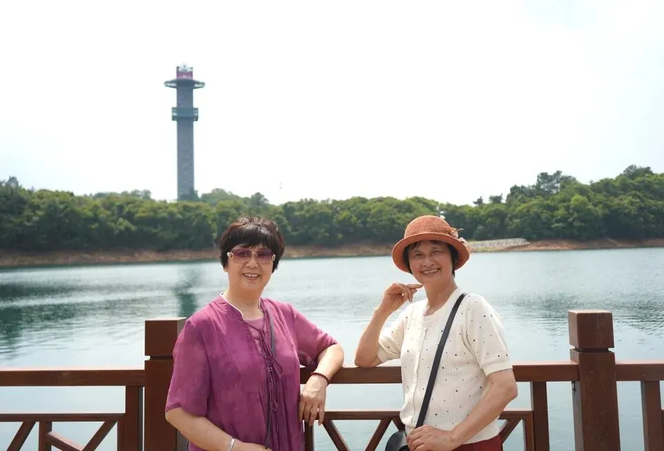 老爸老妈纷纷拿出手机,记录下这如诗如画的美景,留下一段段美好的回忆。