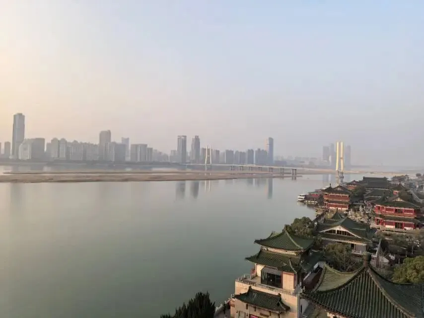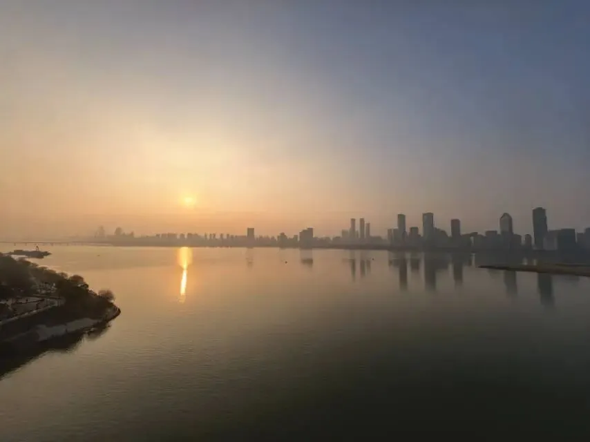登临滕王阁五层西眺,赣江如练,夕阳熔金。落日余晖将碧瓦丹柱染成暖橙,飞檐剪影在霞光中愈发挺拔。江面波光碎金,与天边流云交织,远眺八一大桥如长虹卧波。此刻,王勃笔下“落霞与孤鹜齐飞,秋水共长天一色”的千古绝唱,跨越千年时光,在眼前徐徐铺展。待华灯初上,古阁与对岸红谷滩的现代楼宇交相辉映,更显英雄城的气韵悠长。