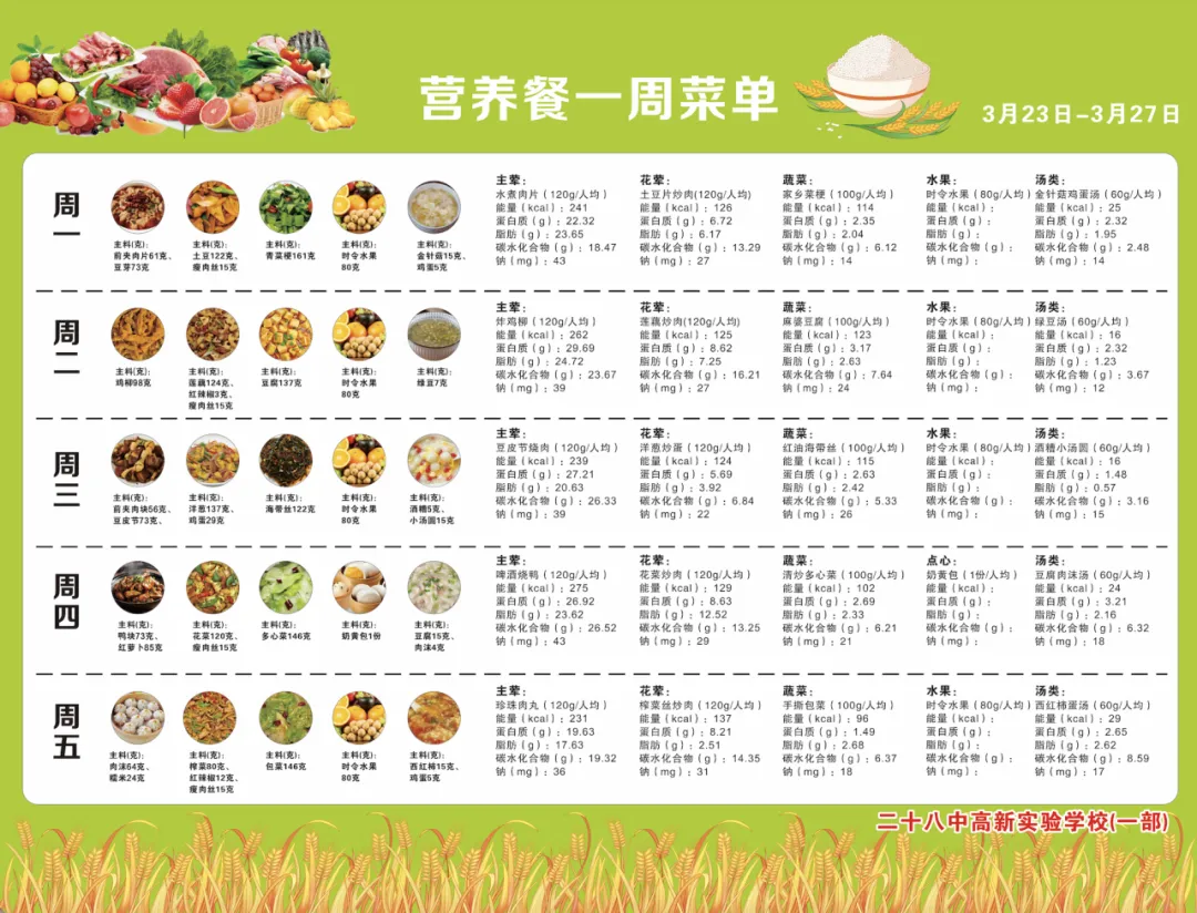 “食”刻守护,美好相伴——南昌二十八中高新实验学校营养菜谱(3月23日-3月27日)