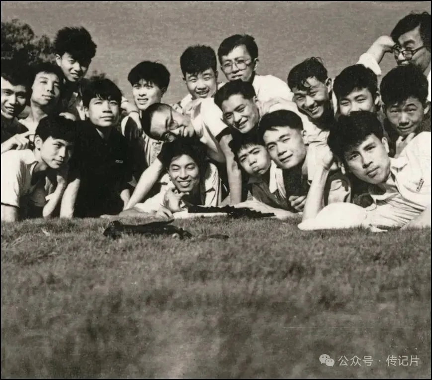 1960年9月,浙江美院油画系二年级全班同学欢聚在柳浪闻莺公园,前排左起高友麟(友林)、彭兆光、施绍辰、褚士明、胡振玉(振宇),中排左起丁仪新、曲志刚(进修生)、张洪祥、顾百岁、不详(进修生)、朱璞(朴)、赵芝辉、郑源迈,后排左起罗会刚、陆庭祥、不详(进修生)、白仁海、曾崇仁
