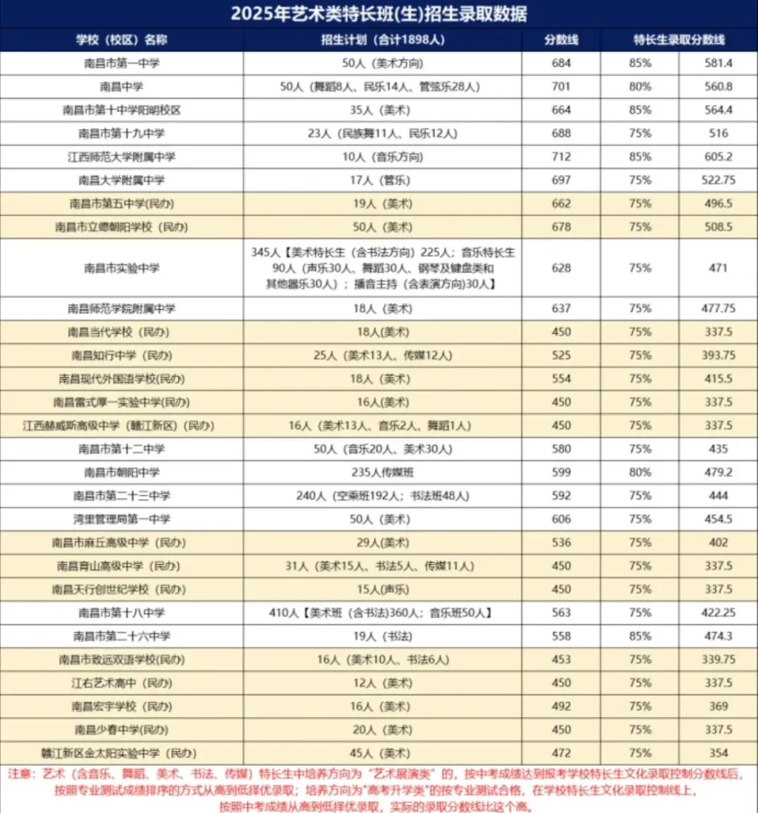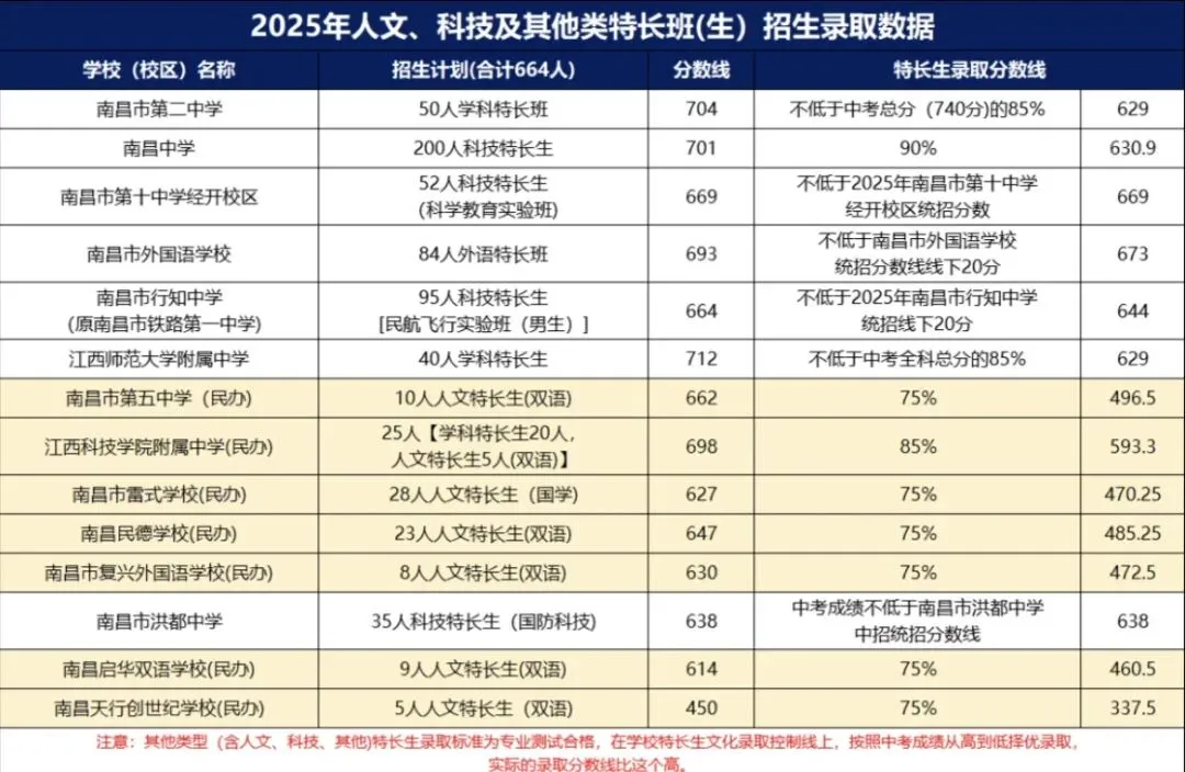 以下是25年南昌中考,特长生报考各高中录取分数线要求 :