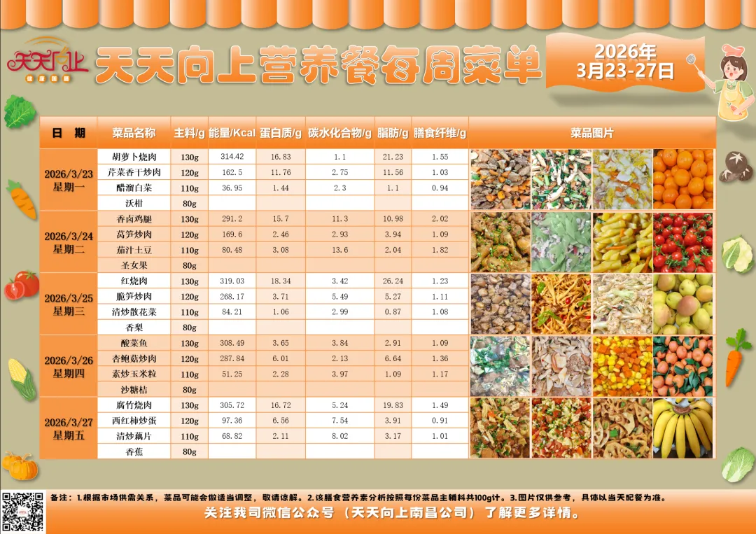 说明:上述带量食谱数据仅作为膳食营养均衡推荐摄入量,学生可按需取量。