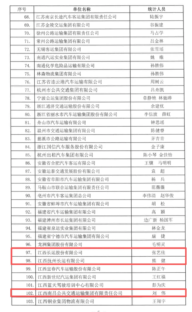 江西长运股份有限公司张艺佳同志、江西抚州长运股份有限公司熊健同志、南昌公交运输集团刘伟同志荣获2025年度交通运输部重点联系道路运输企业报表及经济运行分析工作优秀统计人员称号。