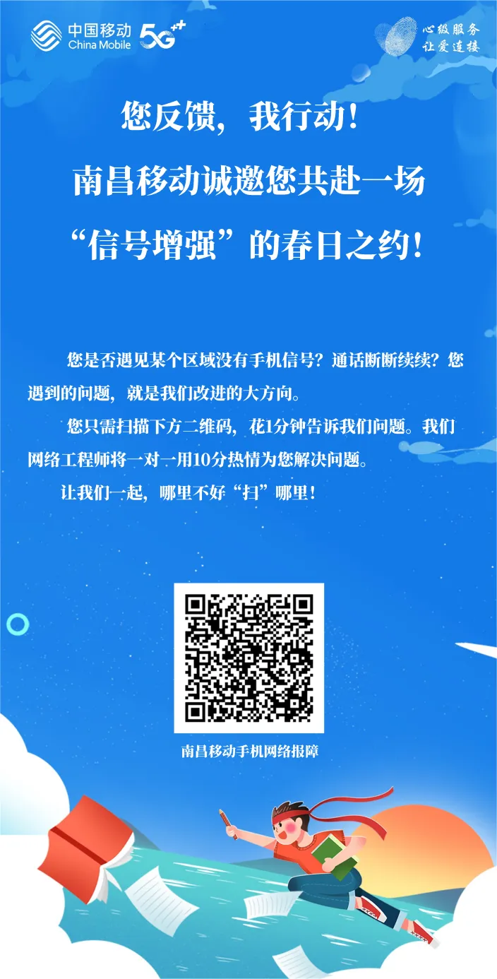 为深入践行“心级服务”品牌承诺,南昌移动“扫除黑点新春季”正式启动。您遇到的问题,就是我们改进的大方向。