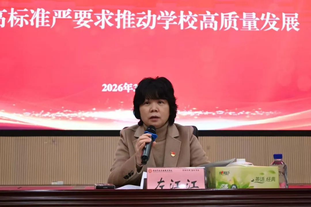 3月18日上午,专题班在学校图书馆一楼演播厅开班。校党委书记左江江以“深入学习贯彻党的二十届四中全会精神 以高标准严要求推动学校高质量发展”为题讲授专题党课。她指出,党的二十届四中全会是在我国迈向基本实现社会主义现代化关键时期召开的一次具有里程碑意义的重要会议,全会通过的《中共中央关于制定国民经济和社会发展第十五个五年规划的建议》(以下简称),为职业教育高质量发展指明了前进方向、提供了根本遵循。我们要深刻理解推动高质量发展和办好人民满意的教育。她强调,深入学习贯彻党的二十届四中全会精神,要践行“取乎其上”的工作理念,以高标准严要求推动学校高质量发展。要提高政治站位,深刻把握全会精神对学校发展的核心指引,始终坚守社会主义办学方向,立足坚持职业教育属性,以产教深度融合为主线,以影视传播行业需求为导向的核心定位;要深化改革创新,激活学校高质量发展的内生动力,高质量实施新时代立德树人工程,高质量推进教育教学改革,高质量建设师资队伍;要强化责任担当,确保全会精神落地见效,要压实责任凝聚发展合力、真抓实干破解发展难题、攻坚克难谱写发展新篇。努力培养更多适应新时代要求的高素质技术技能人才,为加快建设教育强省、教育强国贡献南影力量。