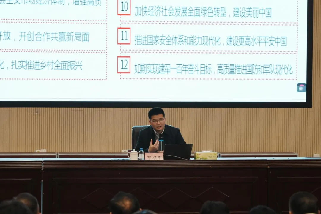 当日下午,中共江西省委党校(江西行政学院)邓顺平教授以“学习贯彻党的二十届四中全会精神 一体推进教育科技人才事业发展”为主题作专题辅导讲座,讲座围绕重大判断、重要安排、重在落实三个维度展开系统阐释。他强调,教育、科技、人才是全面建设社会主义现代化国家的基础性、战略性支撑,必须坚持科技是第一生产力、人才是第一资源、创新是第一动力,深入实施科教兴国、人才强国、创新驱动发展三大战略。他结合新时代部署要求,对教育、科技、人才三项重点工作进行解读。在教育方面,要坚持立德树人,推进基础教育扩优提质、高等教育提质扩容、职业教育特色发展,深化教育综合改革与数字化转型;在科技方面,要强化国家战略科技力量,加强原始创新和关键核心技术攻关,强化企业创新主体地位,推动科技创新与产业创新深度融合;在人才方面,要坚持党管人才,加快建设国家战略人才力量,完善引育留用机制,营造尊重人才、宽容失败的创新生态。他结合江西科技创新、人才强省、教育提质实践,为学校一体推进教育教学、科技创新、人才培养提供了理论指引与实践路径。报告主题鲜明、内涵丰富、视角开阔,进一步加深了参训人员对全会精神的理解把握。
