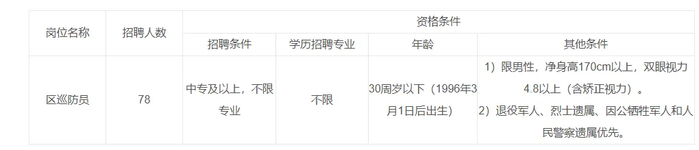本次计划招聘:78名区巡防员。主要从事红谷滩区巡逻防控工作。