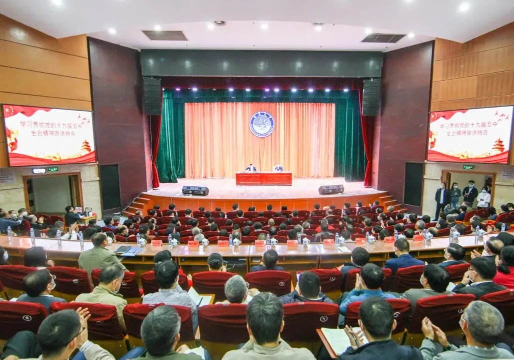 11月16日下午,学习贯彻党的十九届五中全会精神省委宣讲团来我校宣讲,省委宣讲团成员、省发改委党组成员、副主任郭新宇作宣讲报告。校党委书记喻晓社主持报告会。