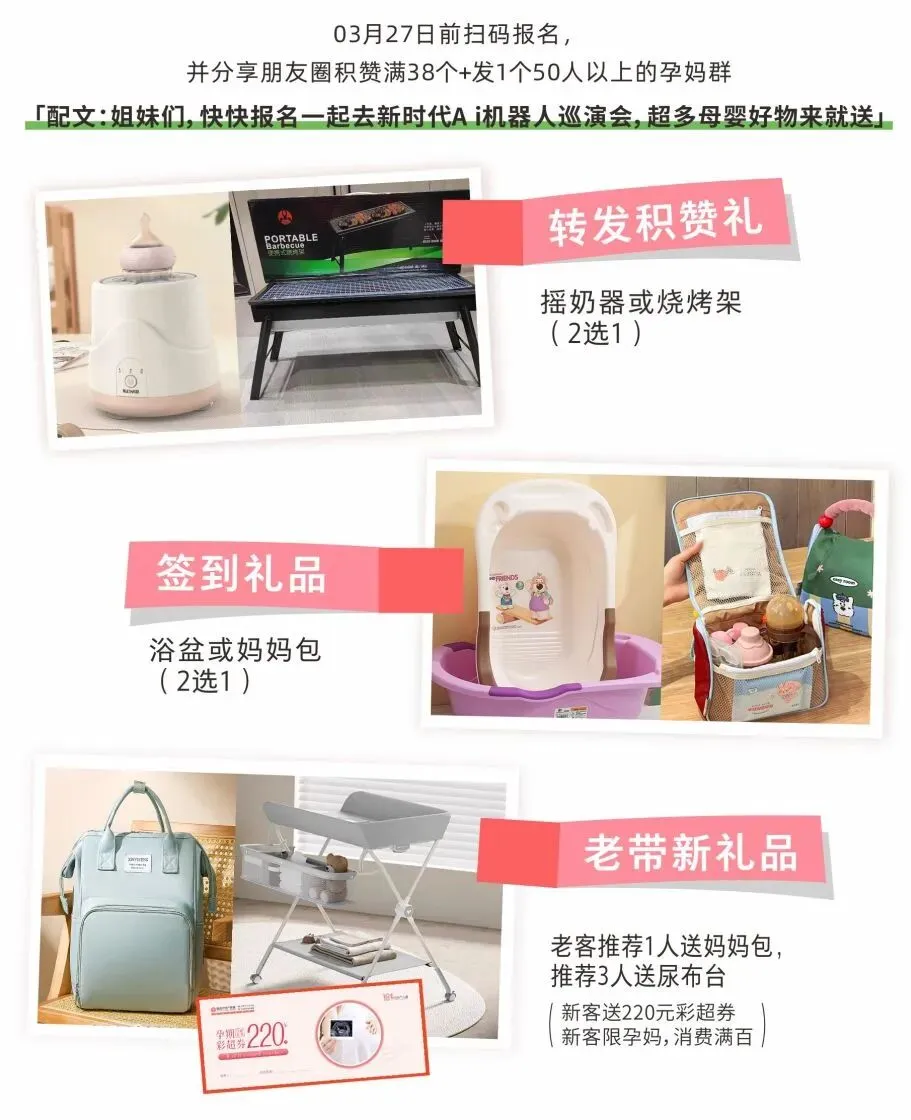 逛展薅好物,孕妇奶粉免费领,母婴尖货一站配齐,遛娃打卡两不误。