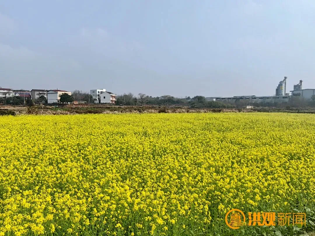 高低相映成画,田园诗意满盈。象山镇象山村依托赣江畔肥沃水田,连片种植千亩油菜。这里栽种的水杉防护林挺拔矗立,与金黄花海高低错落、相映成趣,构成层次丰富、意境独特的春日景观。